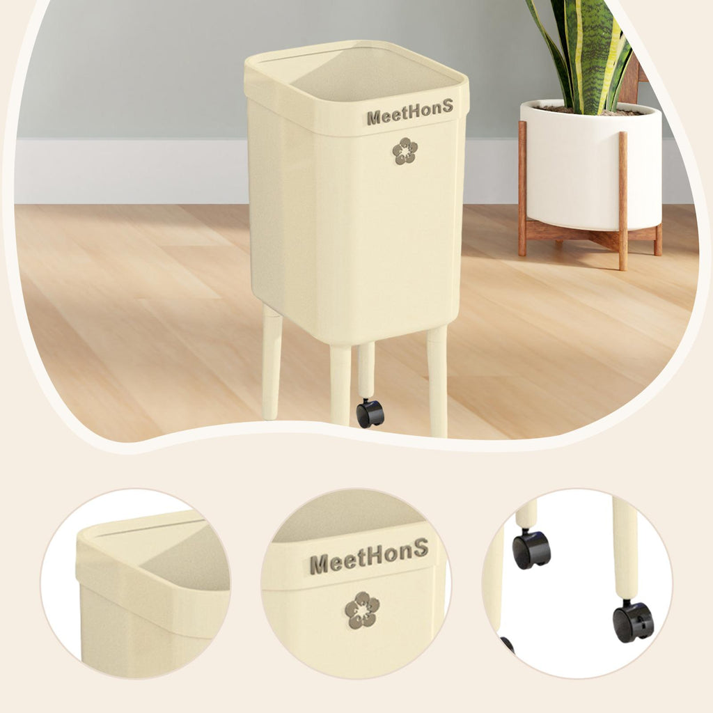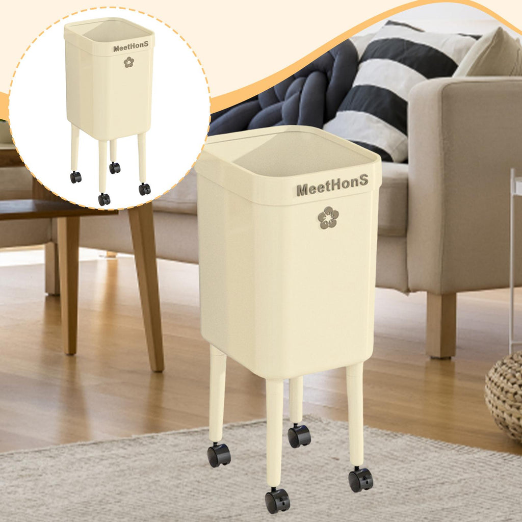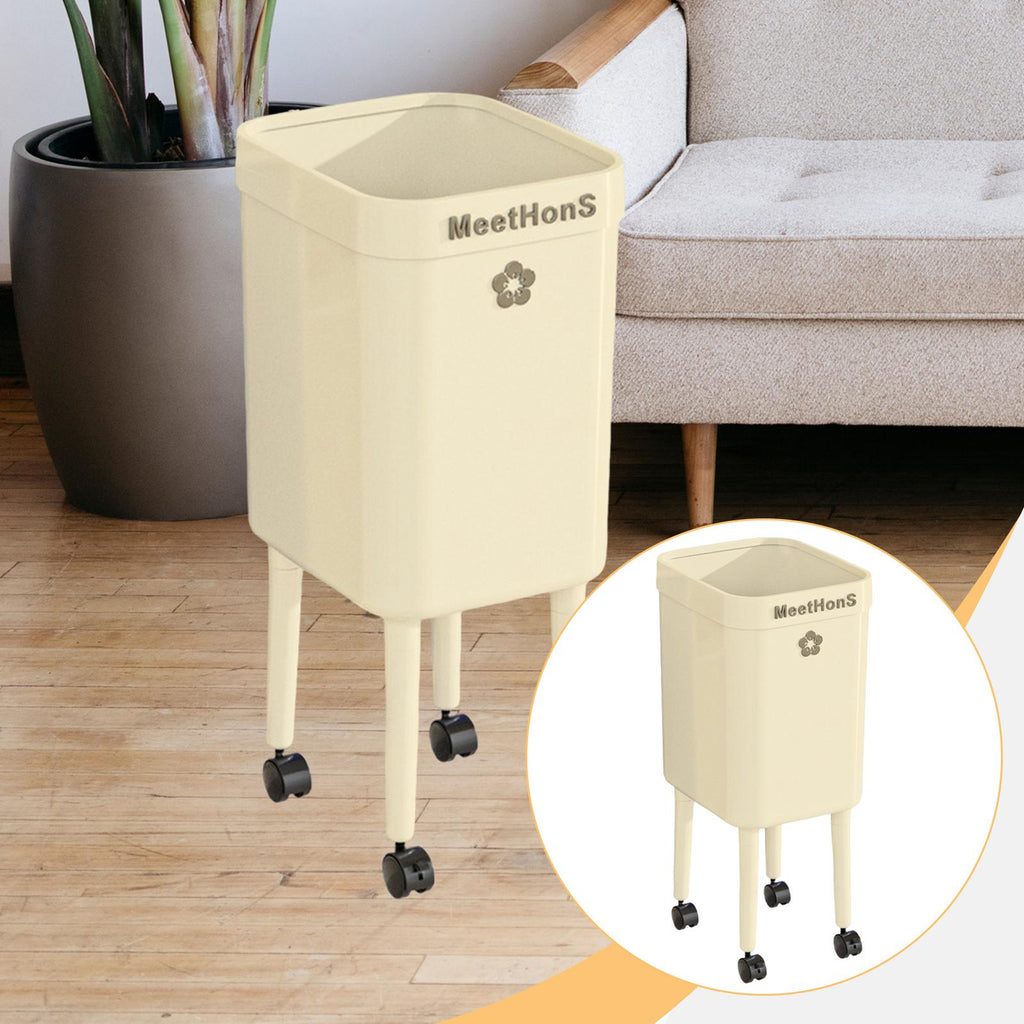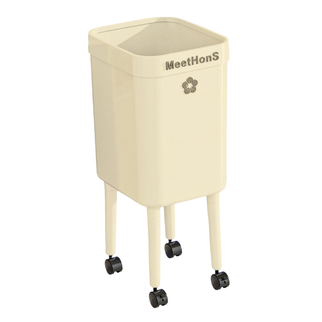 Trash Bin with Wheels High Legs Design Garbage Can for Bathroom Kitchen Home Cream