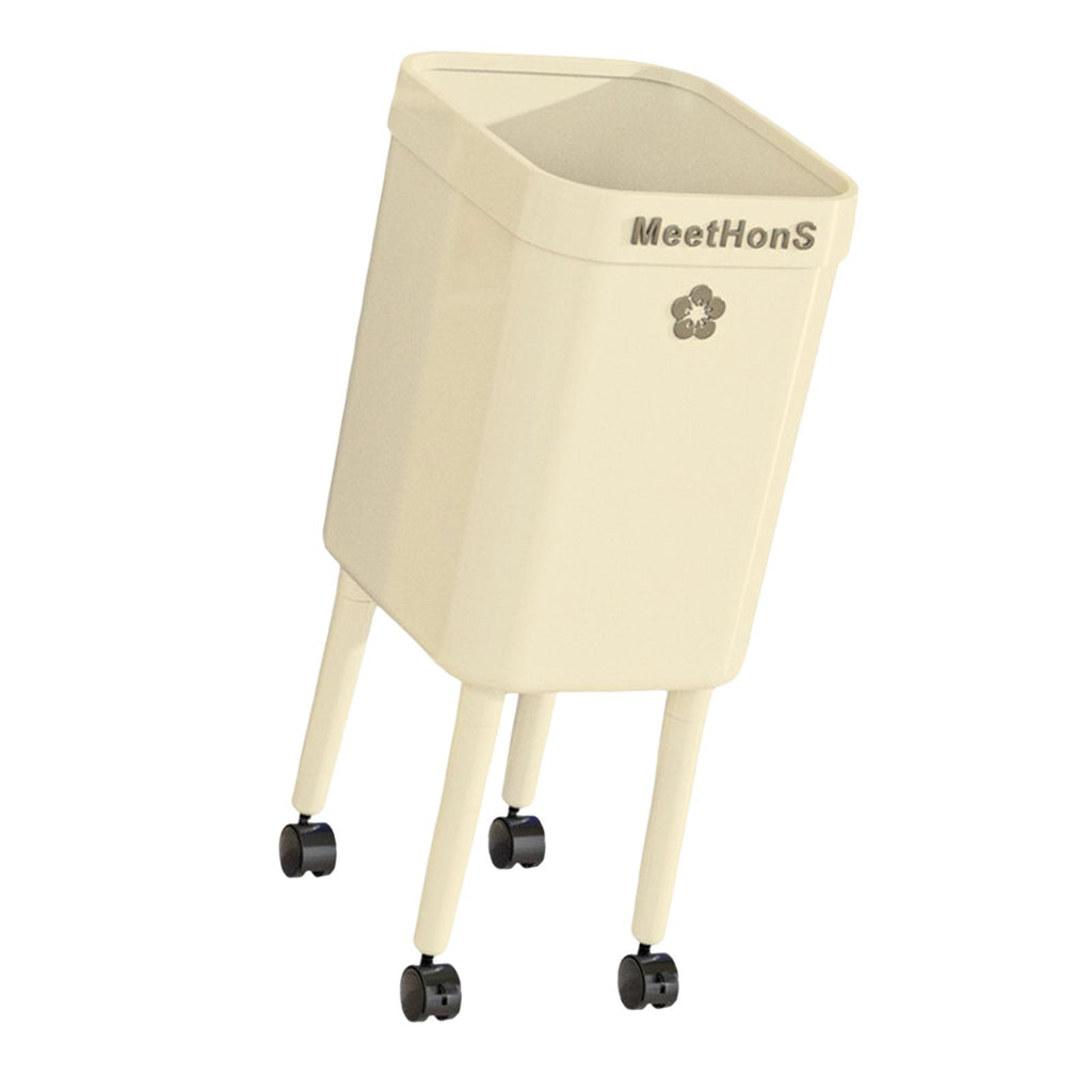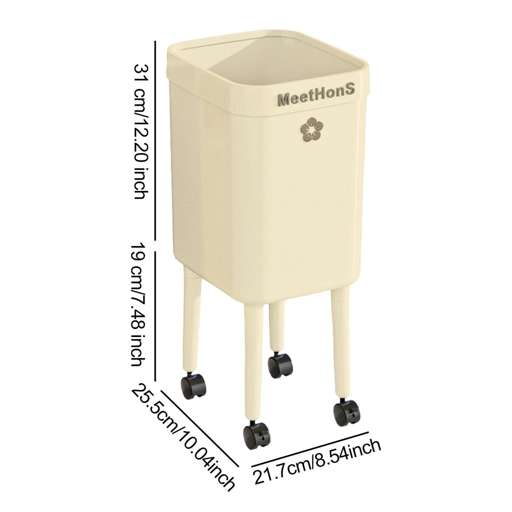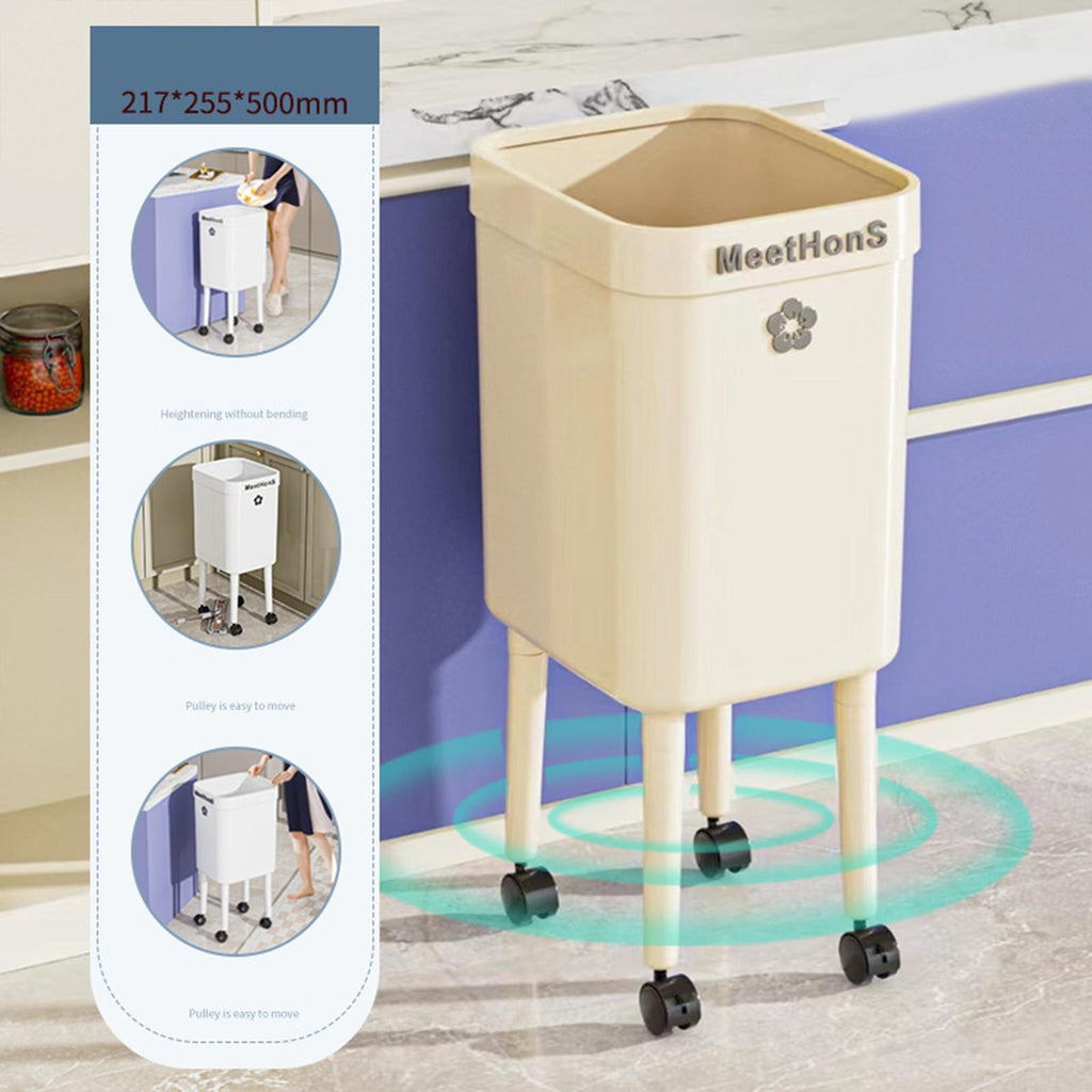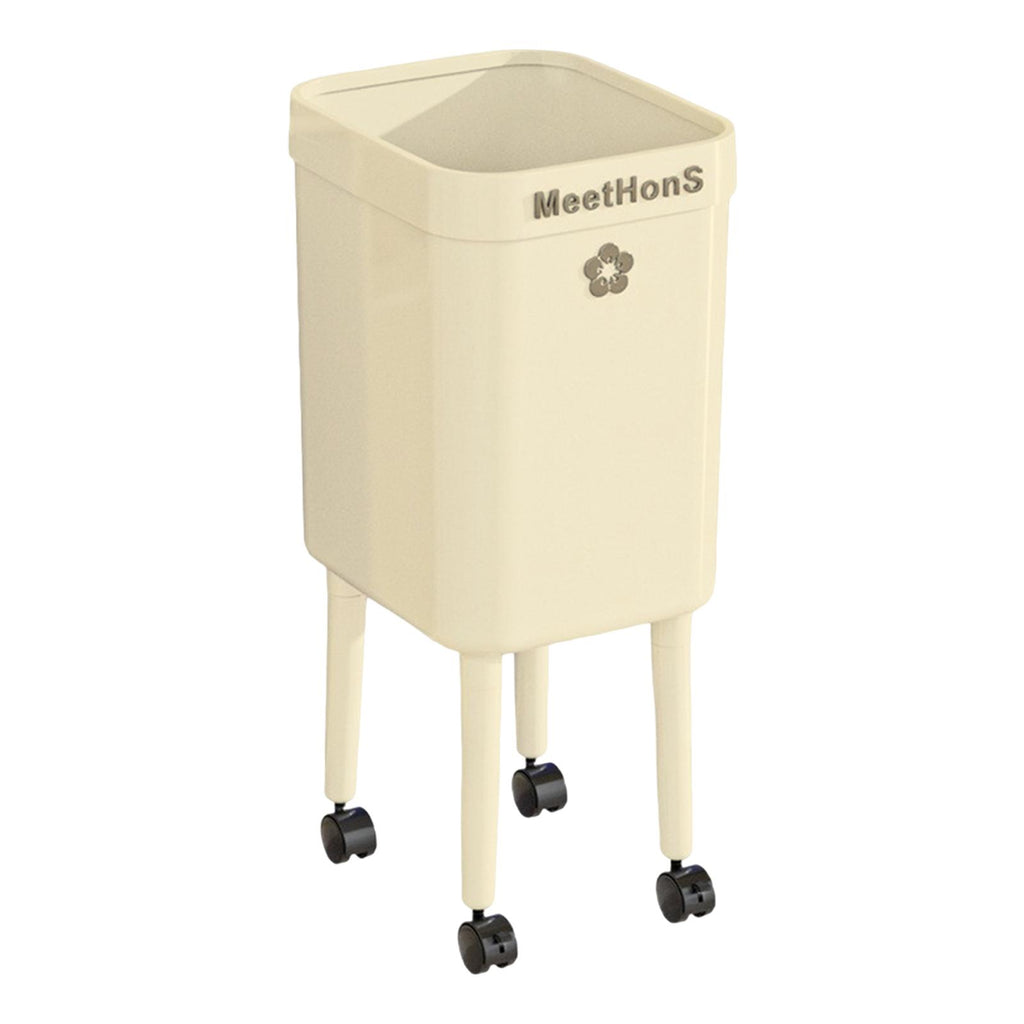 Trash Bin with Wheels High Legs Design Garbage Can for Bathroom Kitchen Home Cream