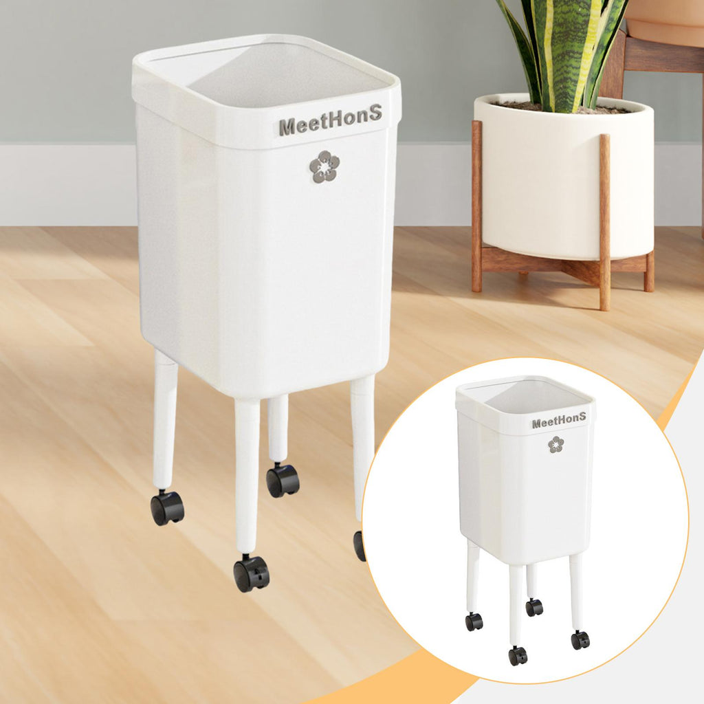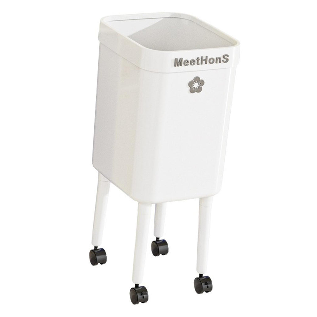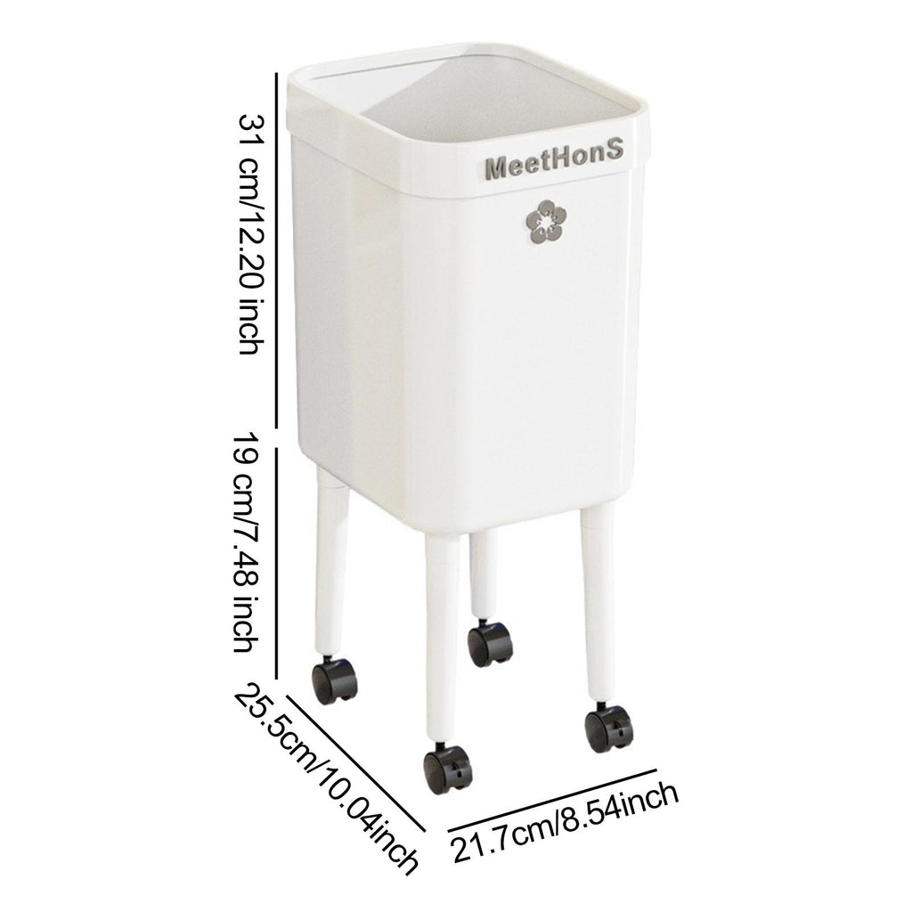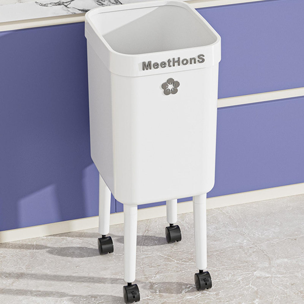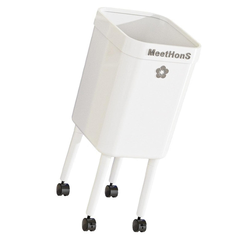 Trash Bin with Wheels High Legs Design Garbage Can for Bathroom Kitchen Home White