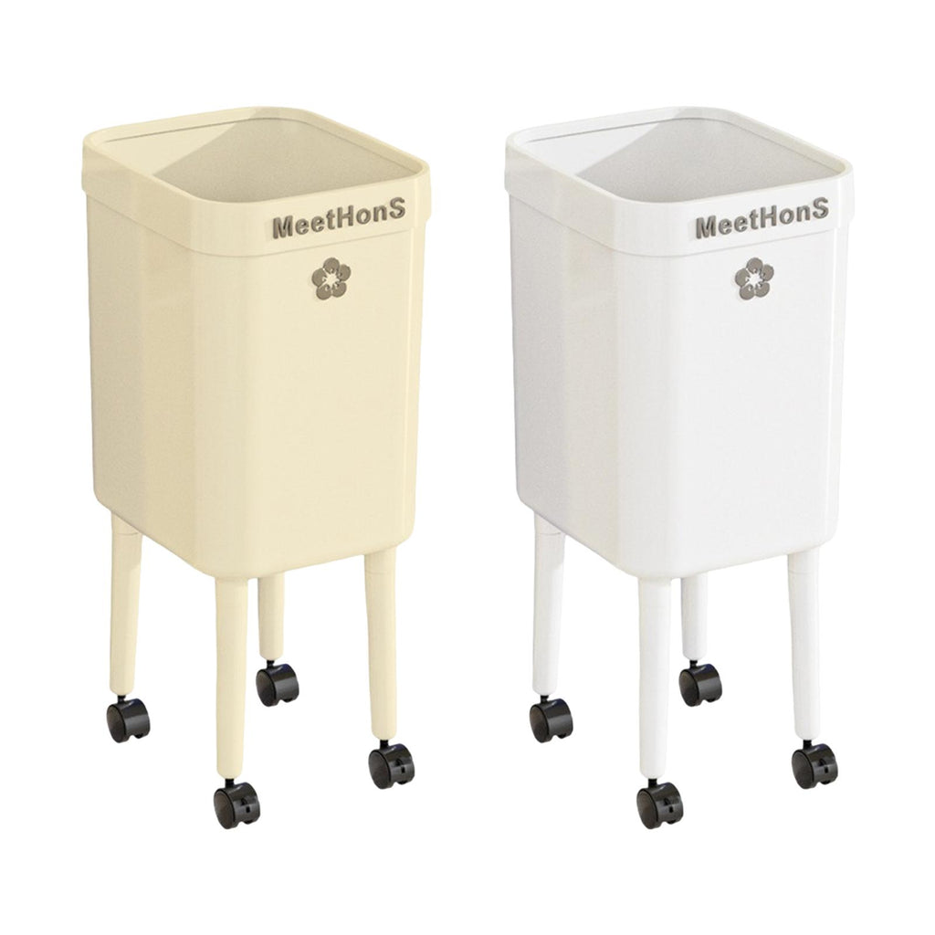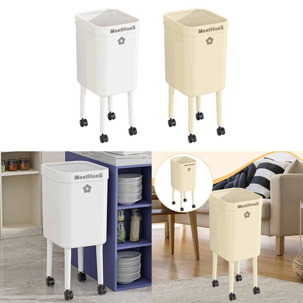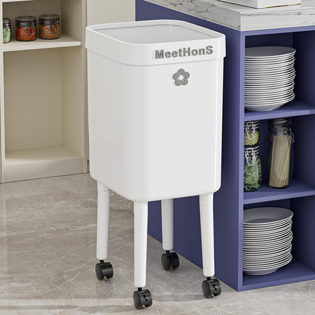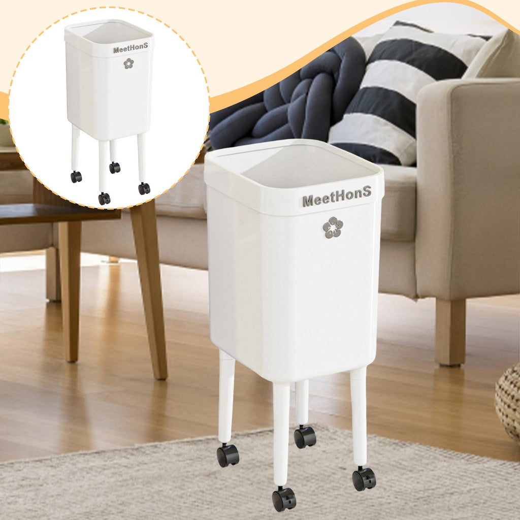 Trash Bin with Wheels High Legs Design Garbage Can for Bathroom Kitchen Home White