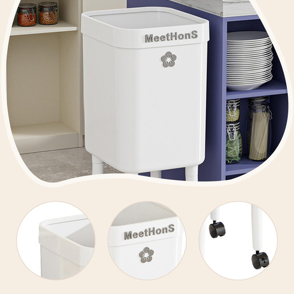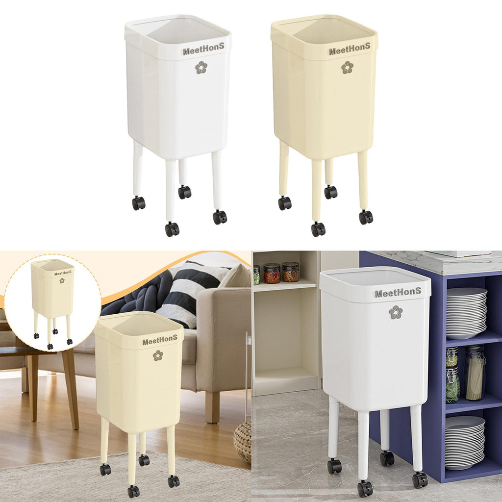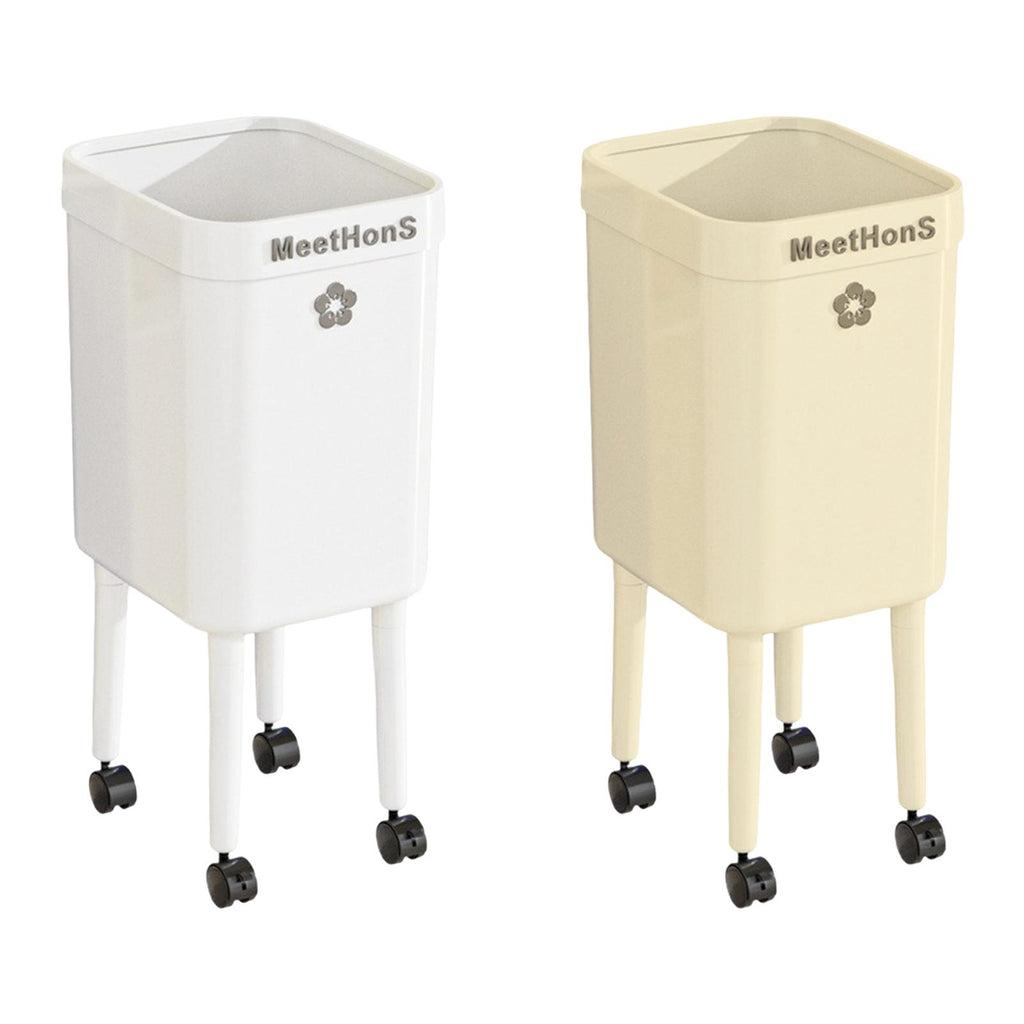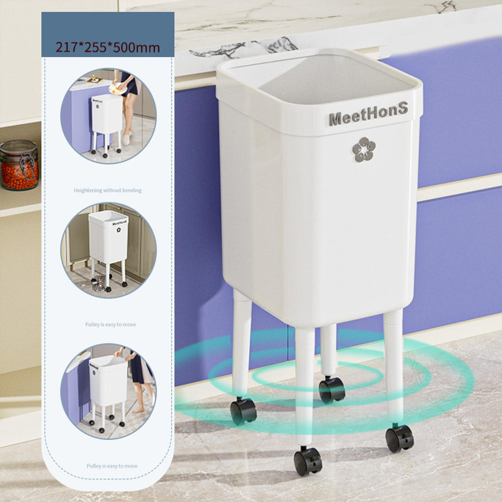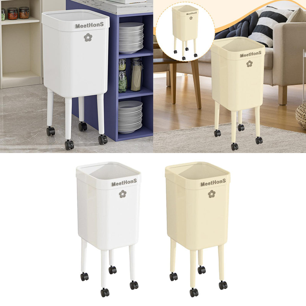 Trash Bin with Wheels High Legs Design Garbage Can for Bathroom Kitchen Home White