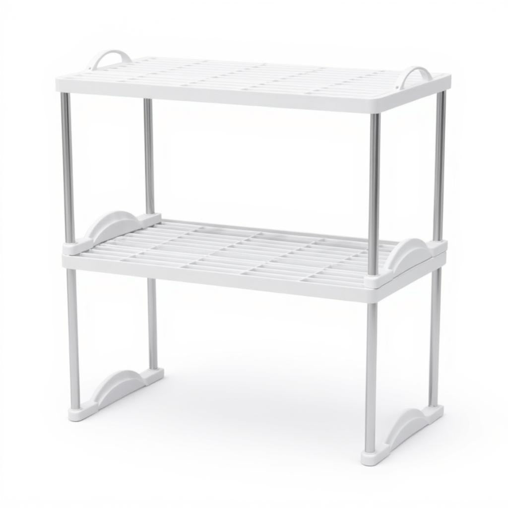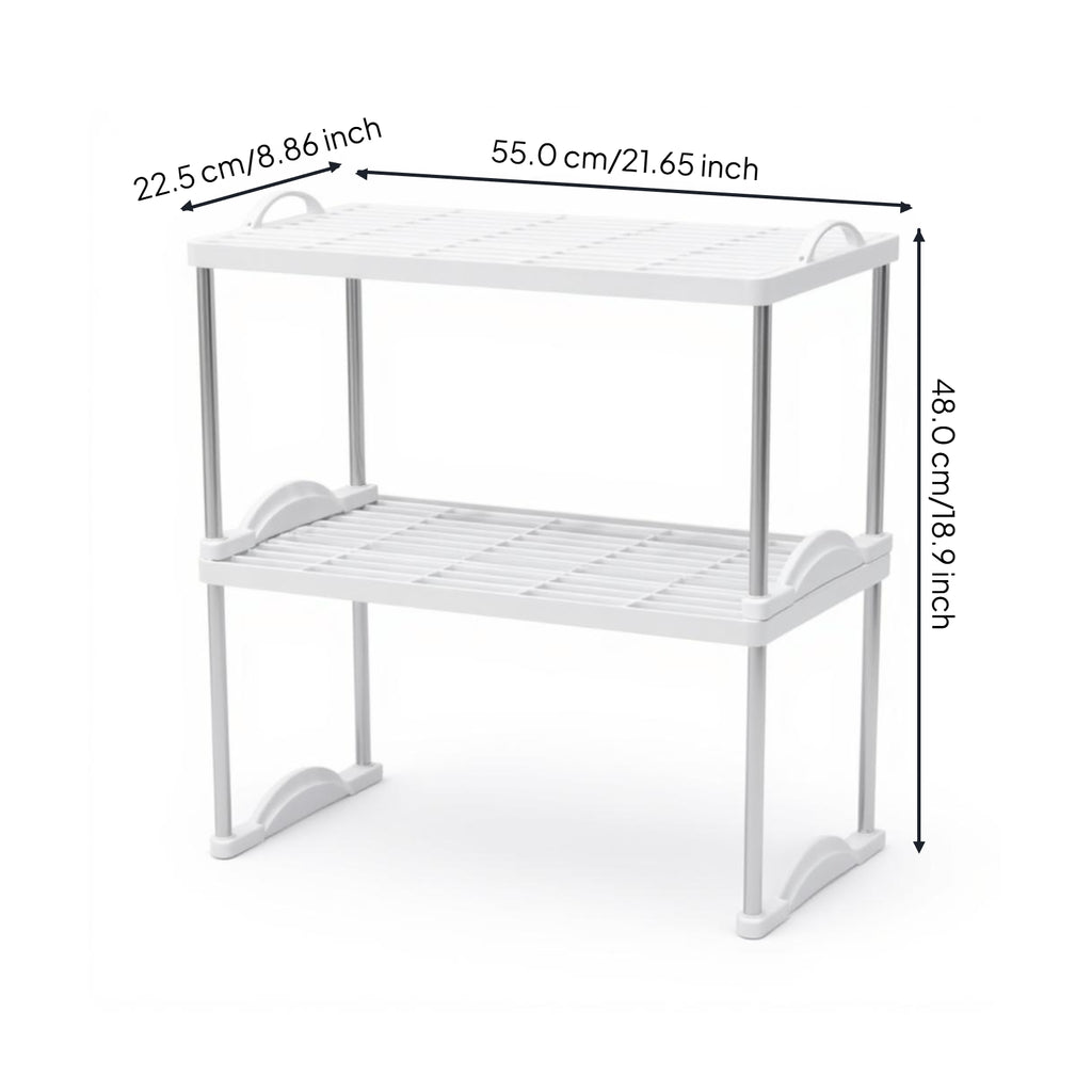 Under Sink Organizer, Multitier Storage Rack, Adjustable Shelf, Kitchen Bathroom Living Room White Ext 2T 48cm