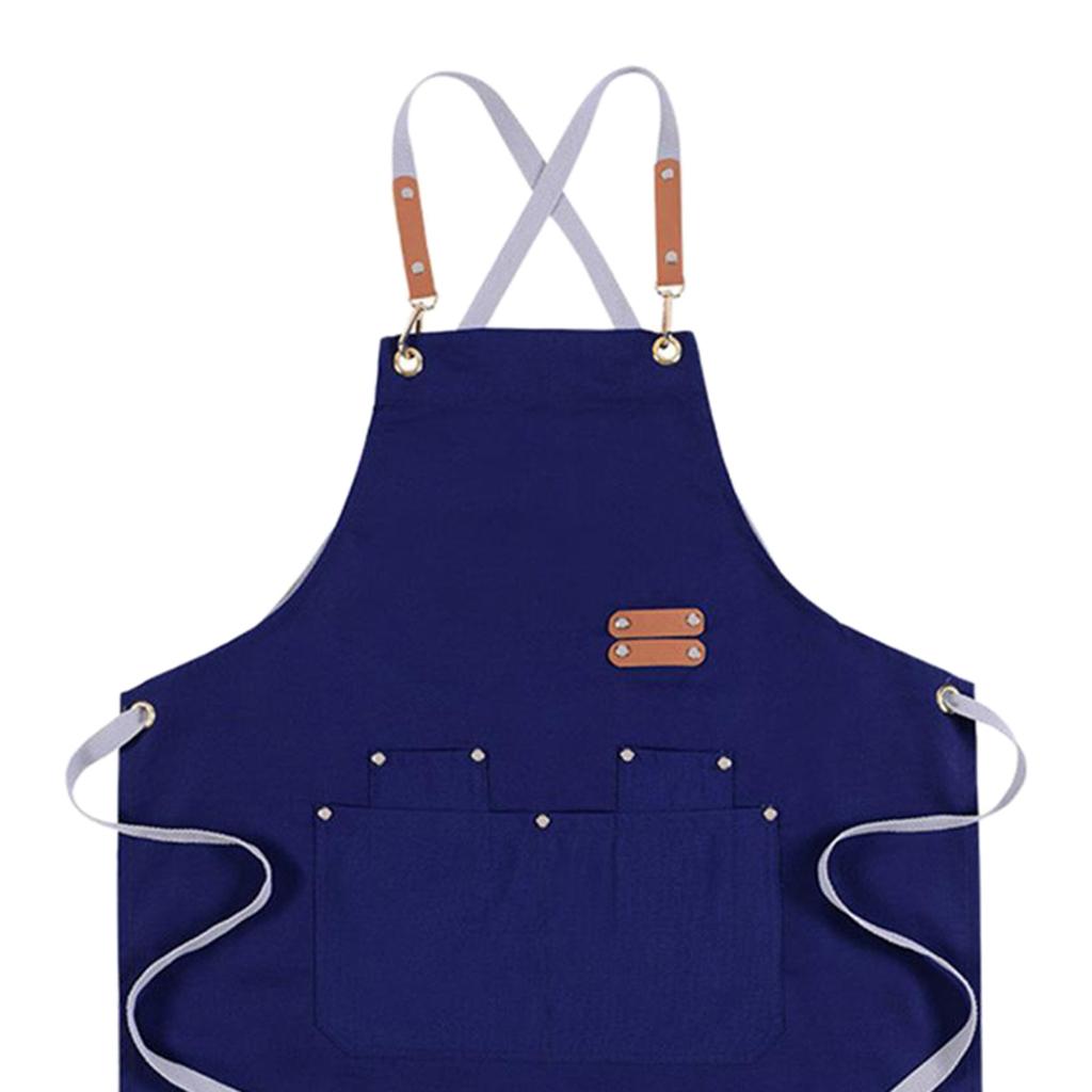 Max Unisex Canvas Apron with Pockets Cafe Kitchen Cooking Painting Apron Bib Blue