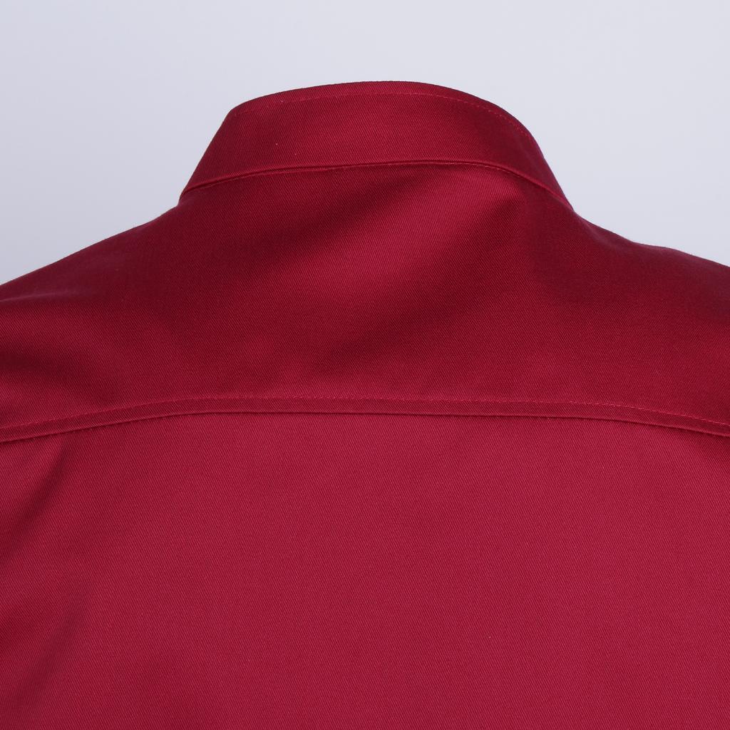 Solid color, single-breasted and long sleeves chef shirt, having left shoulder pockets and right breast pockets, mandarin collar.