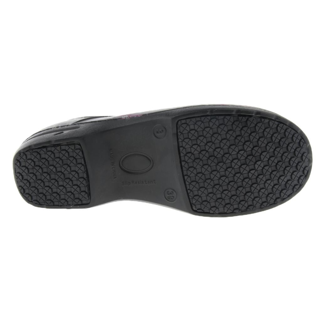 The polyurethane sole is slip-resistant, oil-resistant, non-marking, and shock absorbent.