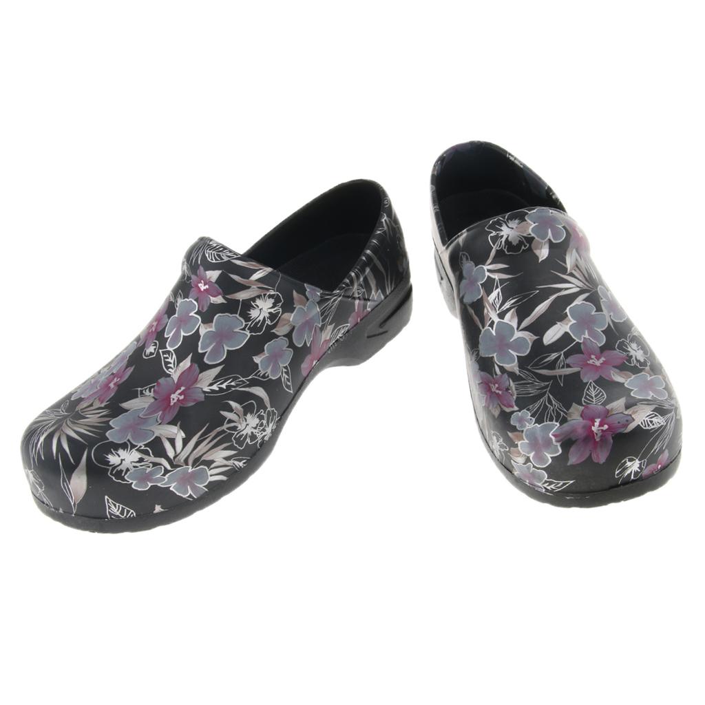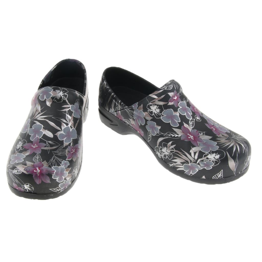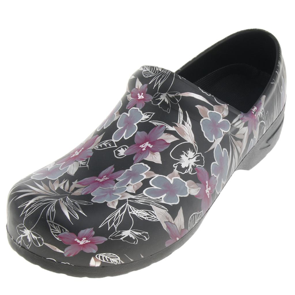 Men women floral work shoes.