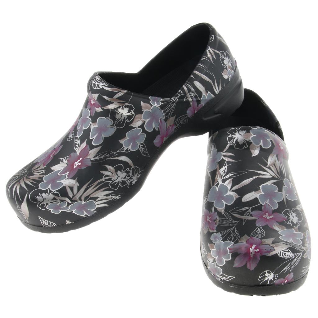 Men women floral work shoes.