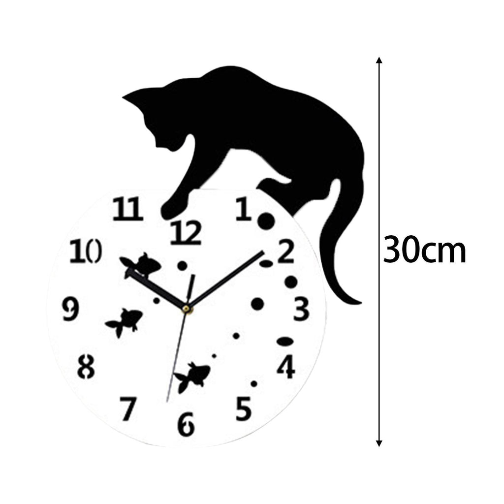 Wall Clock Decorative Silent Hanging Cat Clock No Ticking Easy to Read Quiet Movement Acrylic Ornament for Study Bedroom Kid’S Room Kitchen Living Room Farmhouse Home Dining Room School
