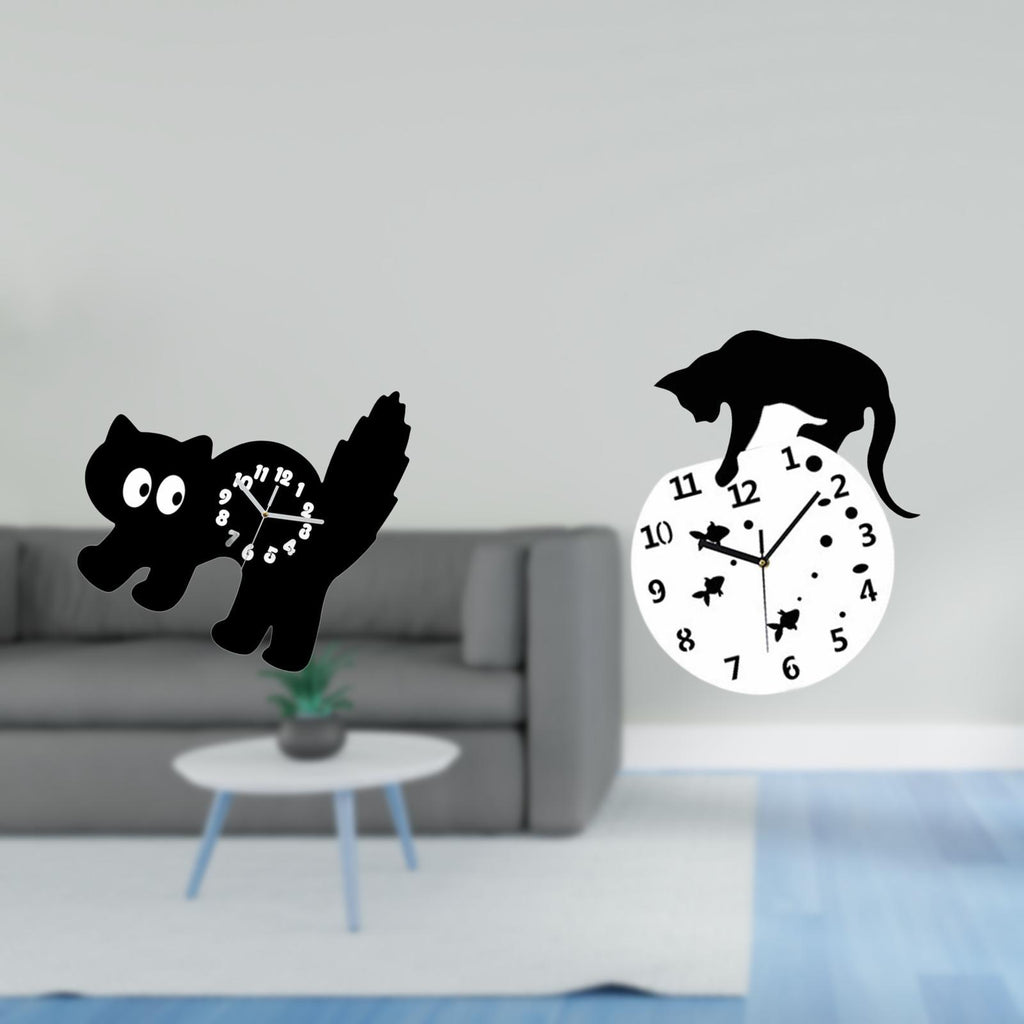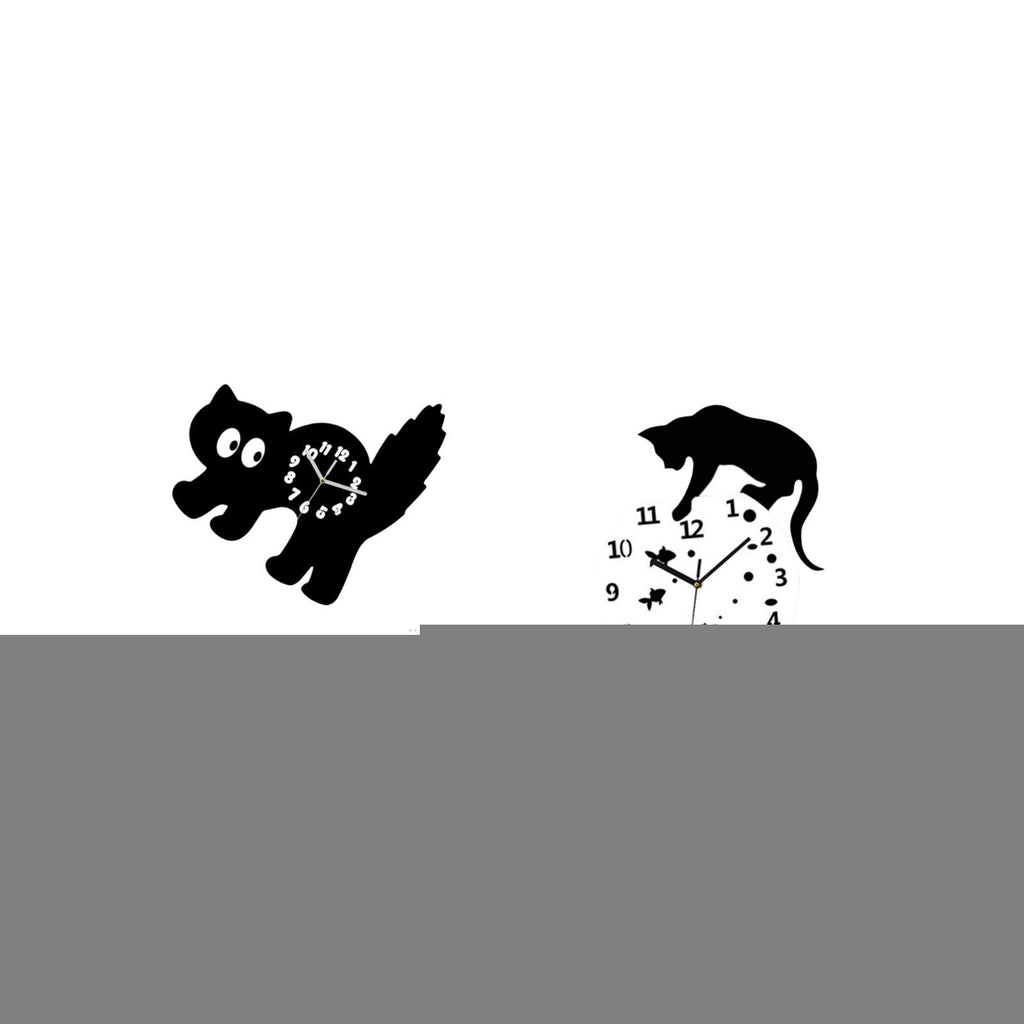 - 【Silent】 Silent ensures no ticking sound for peaceful 2. 【Material】 Sturdy and resistant material makes the clock reliable and beautiful 3. 【Versatile】 Suitable for living room bedroom dining room study room office kitchen and home decor 4. 【Design】 Modern cat shape with large black Arabic numbers adds charm and elegance 5. 【Gift】 gift for housewarming parties or holidays for family and friends