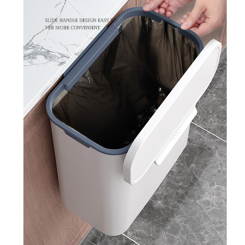 Maxbell Wall Hanging Trash Can Garbage Can Wastebasket for Cupboard Kitchen Office 9L White