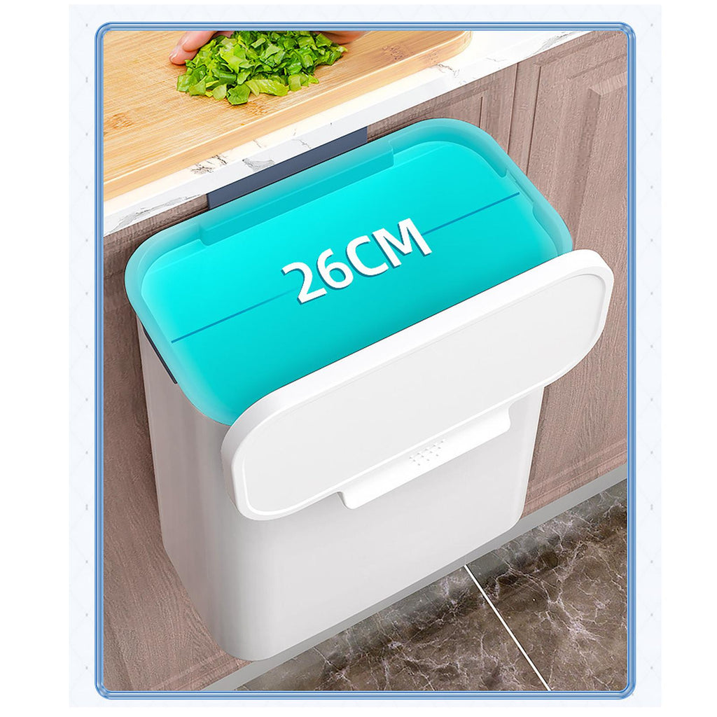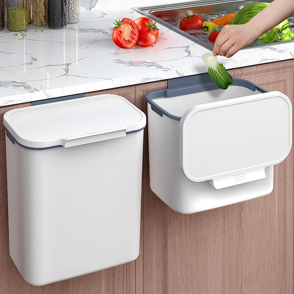 WALL/CABINET MOUNT TRASH CAN: Kitchen trash bin easily hanging over cabinet door for dumping veggie peelings, no need to bend over.