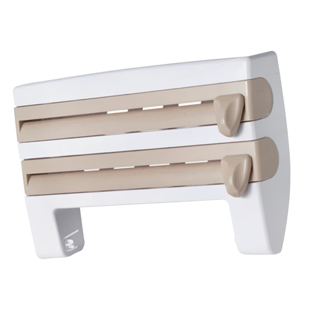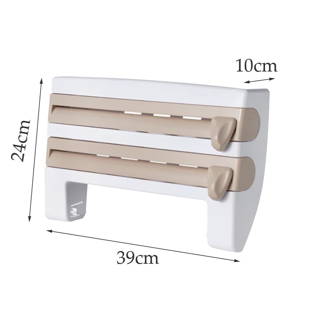 Maxbell Wall Mount Kitchen Roll Holder Cling Film Storage Rack Foil Cutter Khaki