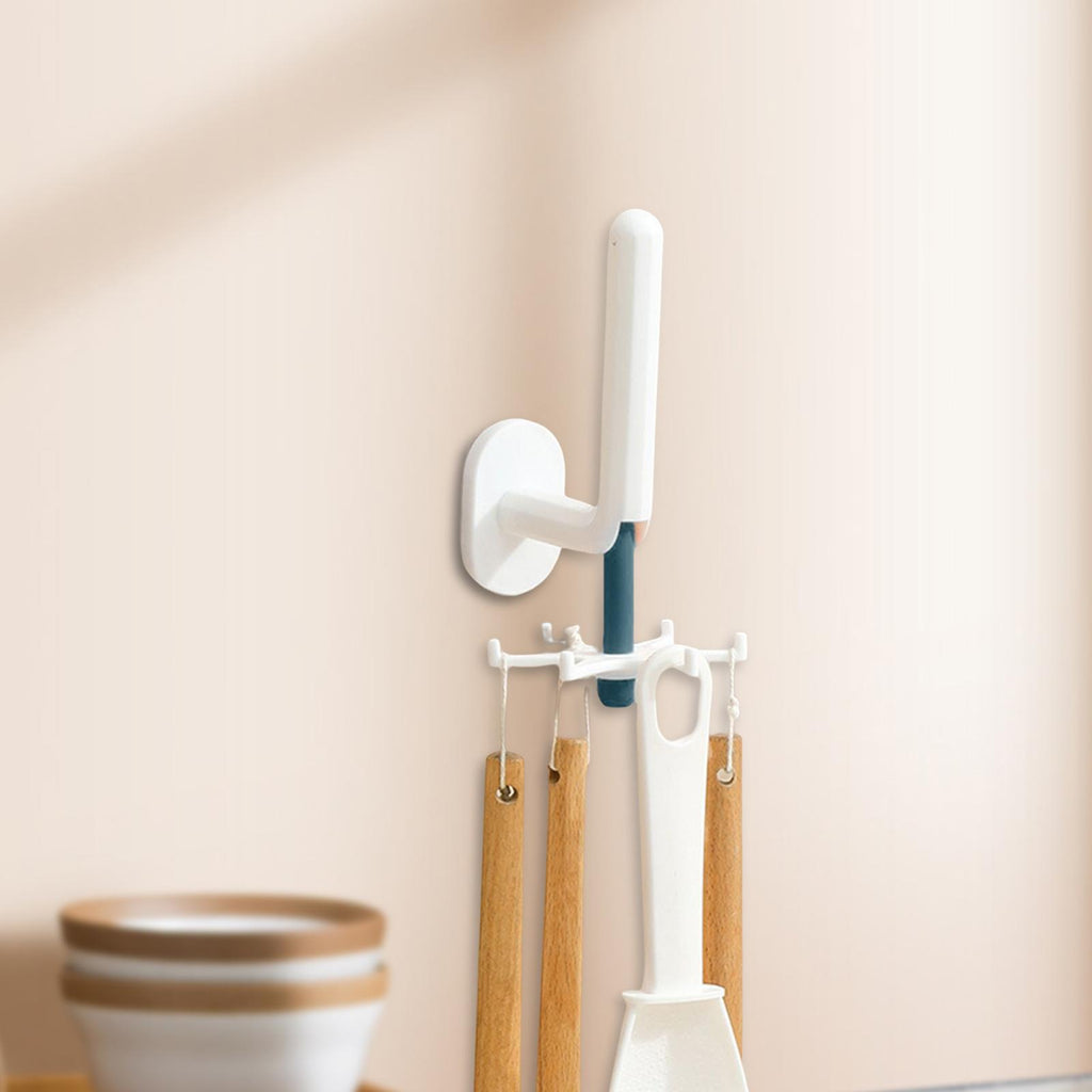 Maxbell Wall Mounted Kitchen Utensil Hook 6 Hooks Door Hook for Home Cabinet White and Bue