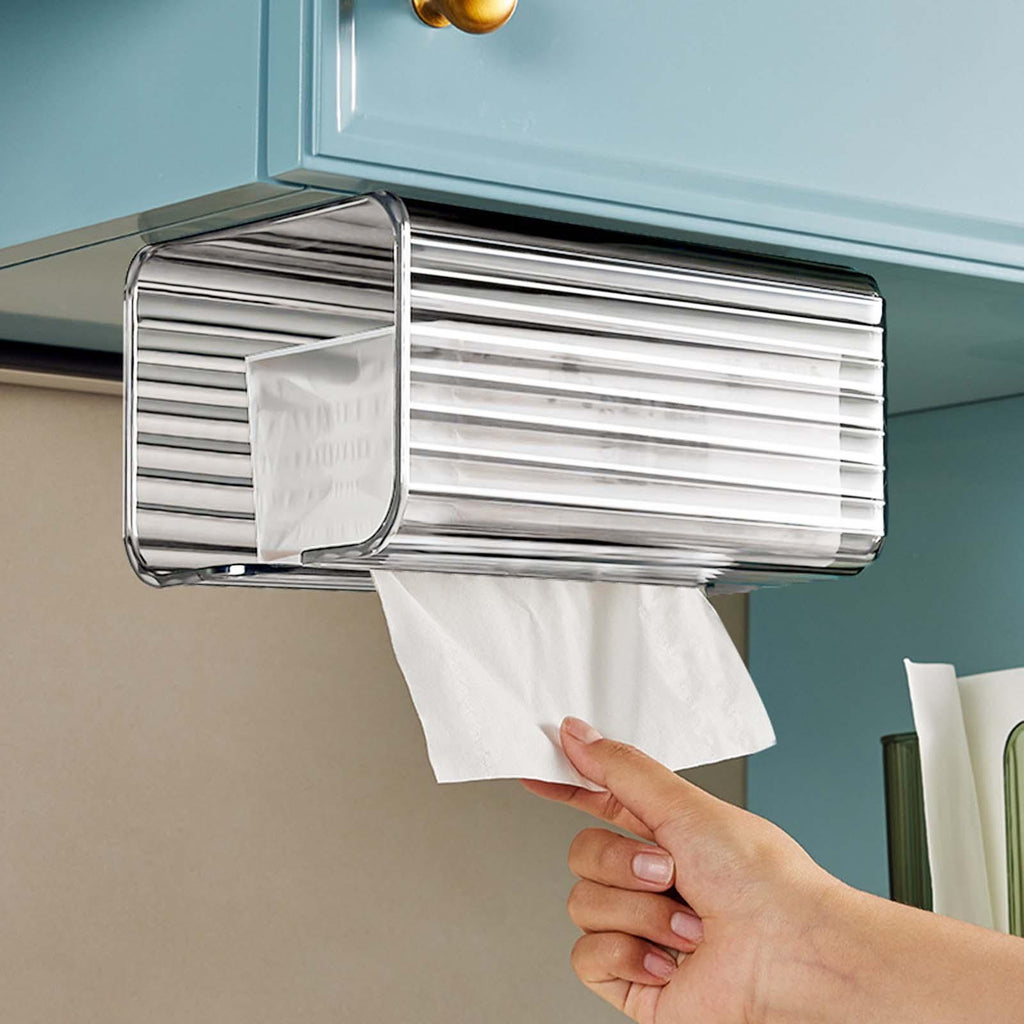 Occasion: This wall hanging wall mounted tissue box holder suitable for under cabinet, desk, bathroom, kitchen, bedroom, for smooth surface.