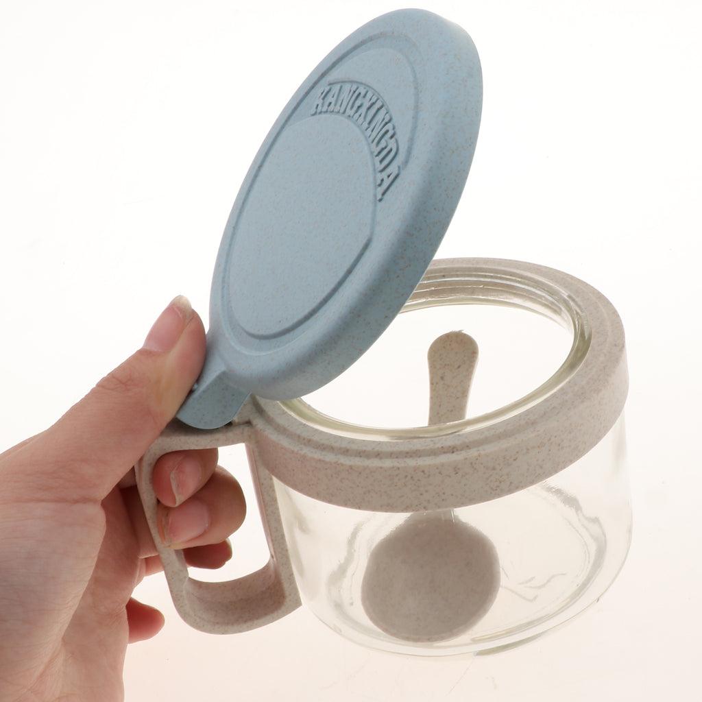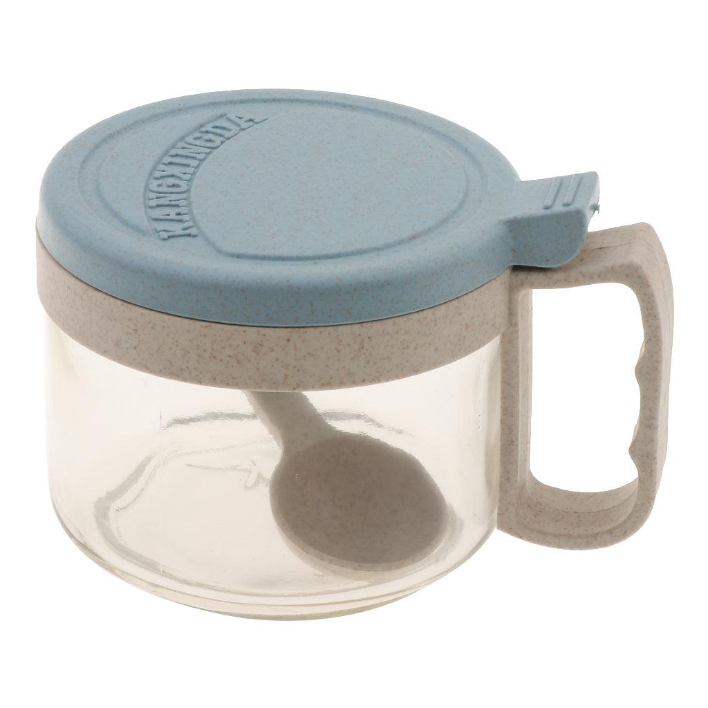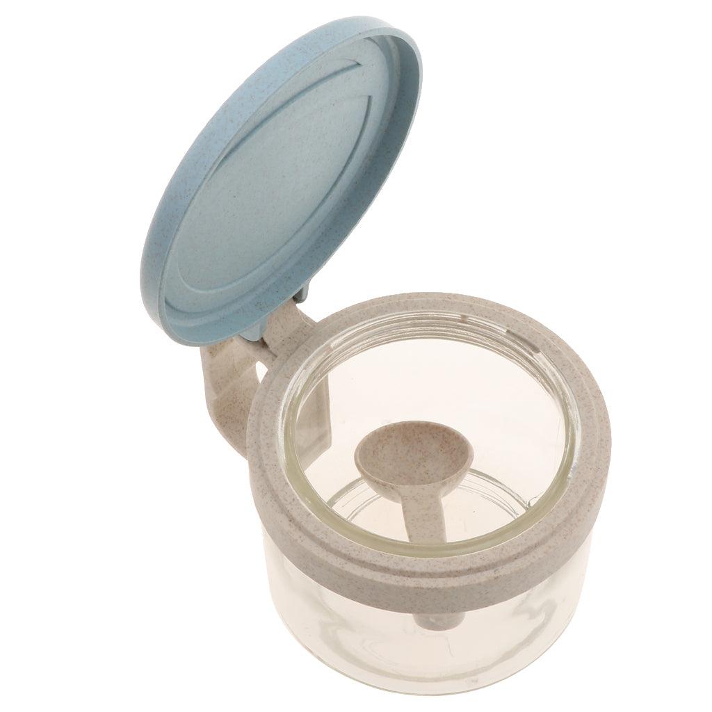 Maxbell Wheat Straw Glass Spice Jar Condiment Pot Seasoning Container Cruet Blue