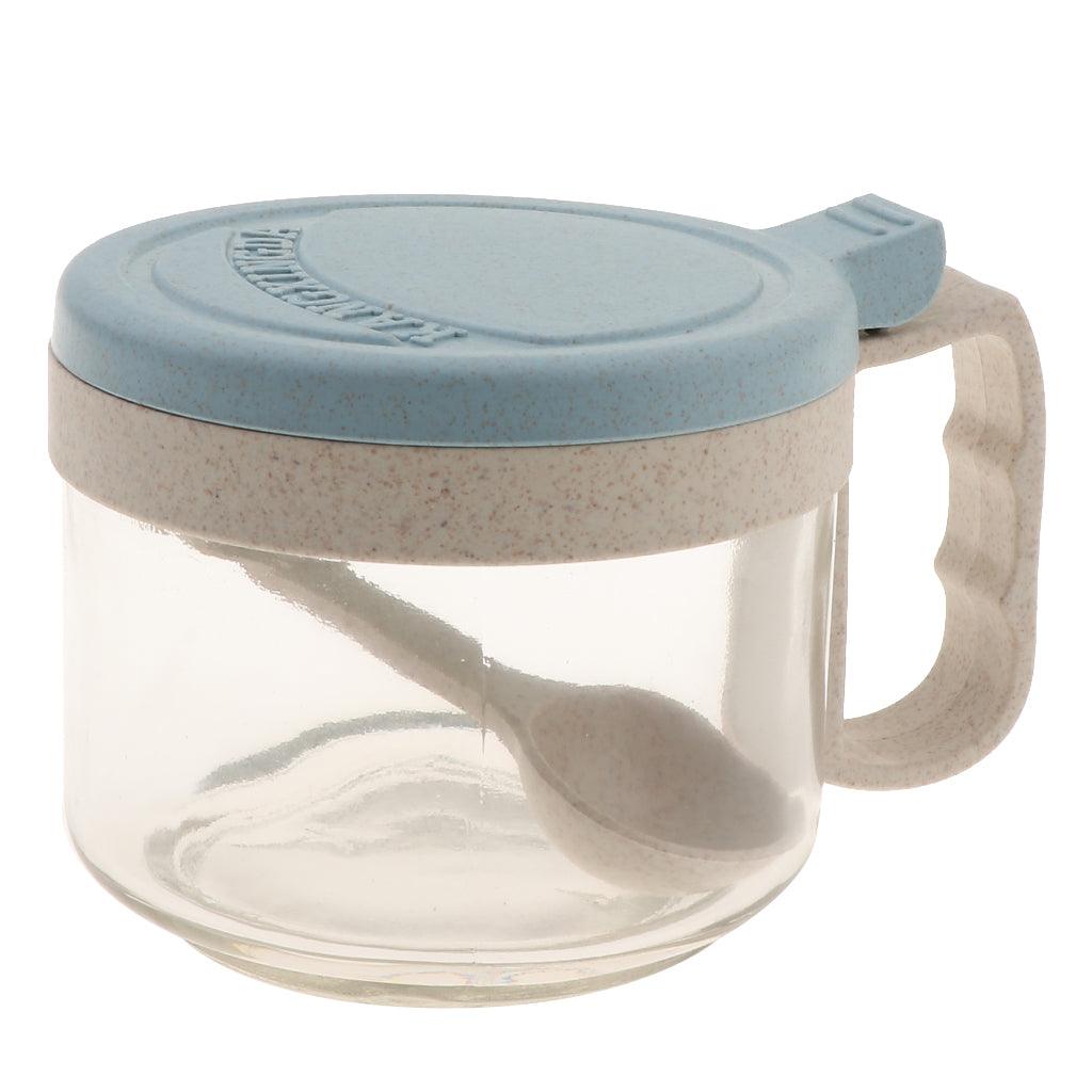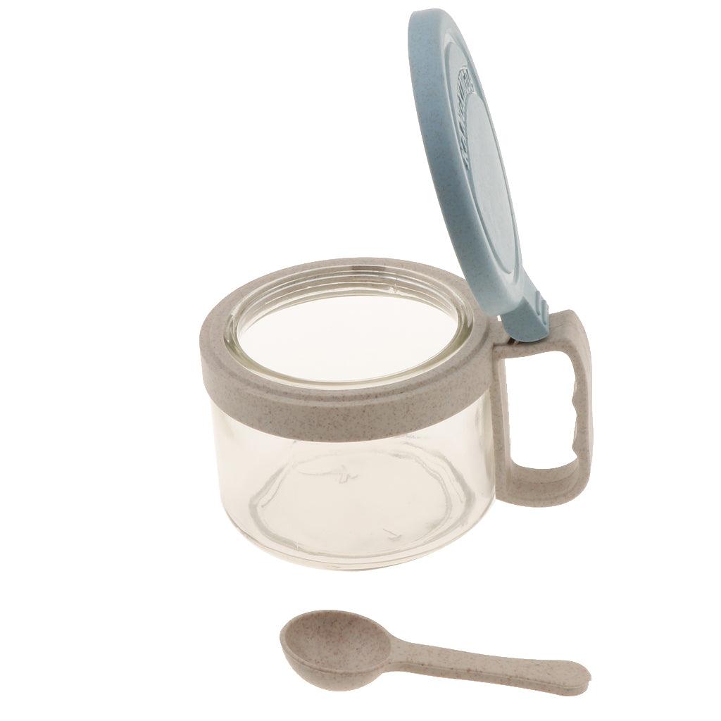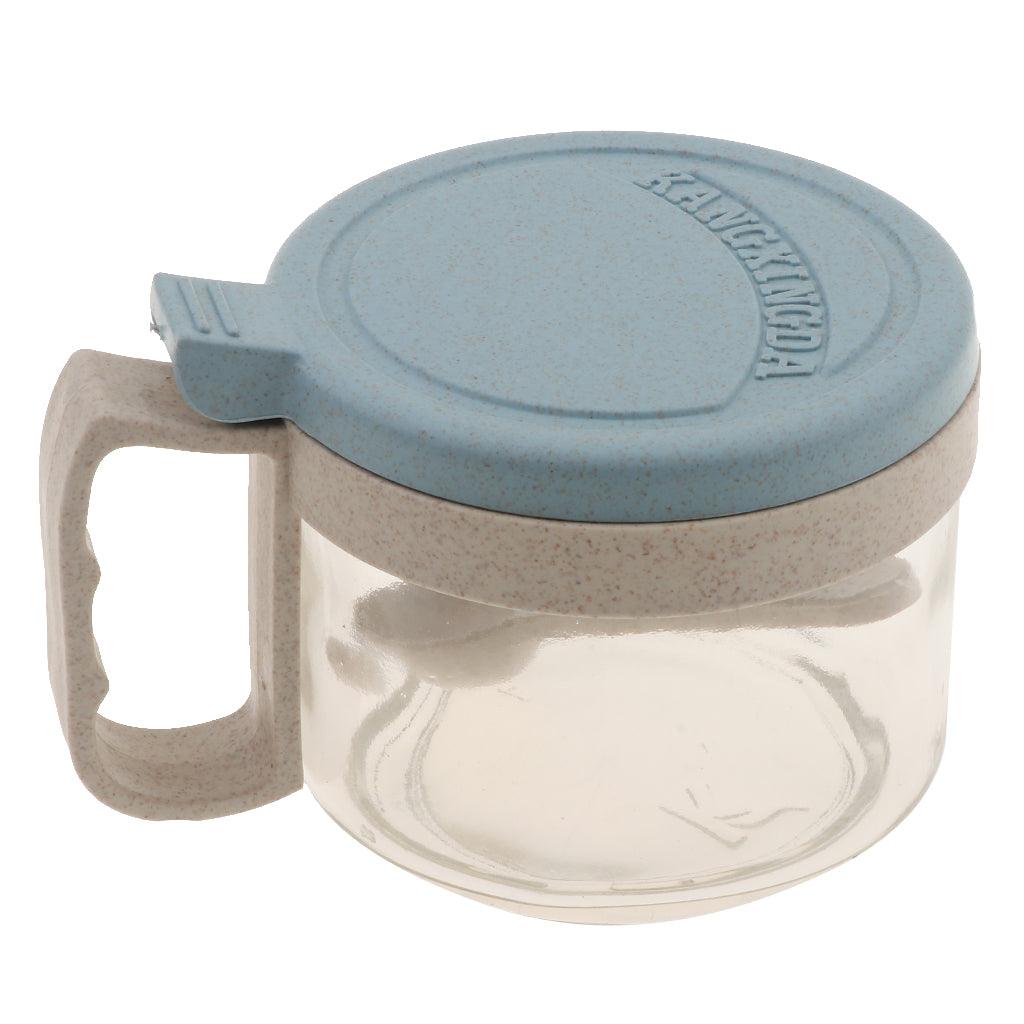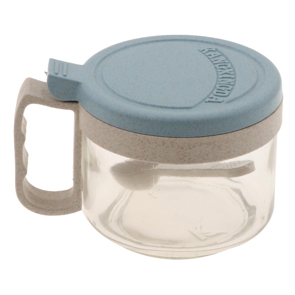 Maxbell Wheat Straw Glass Spice Jar Condiment Pot Seasoning Container Cruet Blue