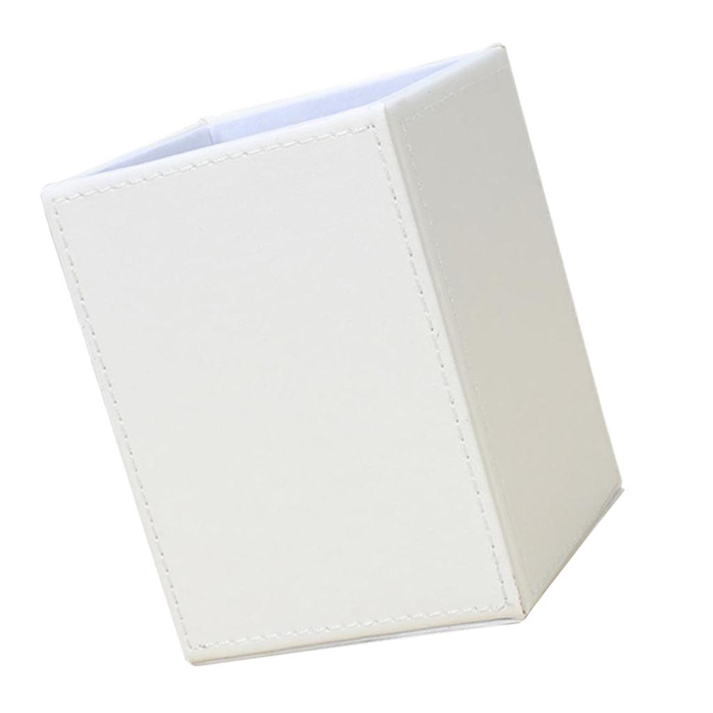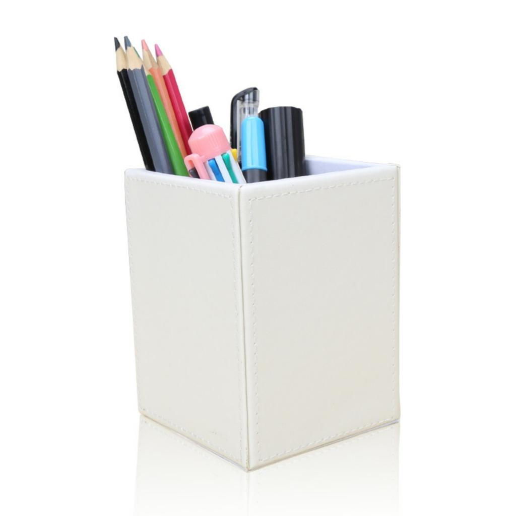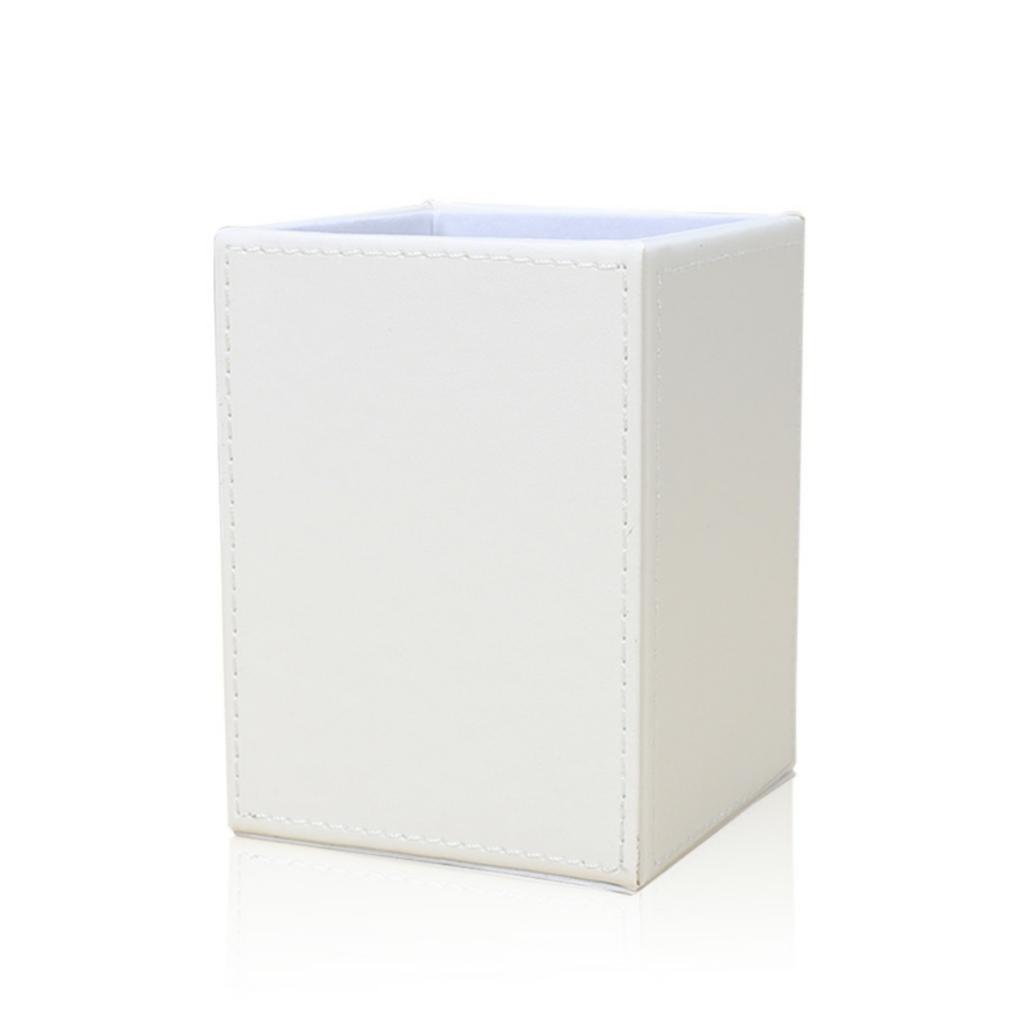 Maxbell White Plain Square Leather Pen Container Brush Pot Tabletop Storage Box