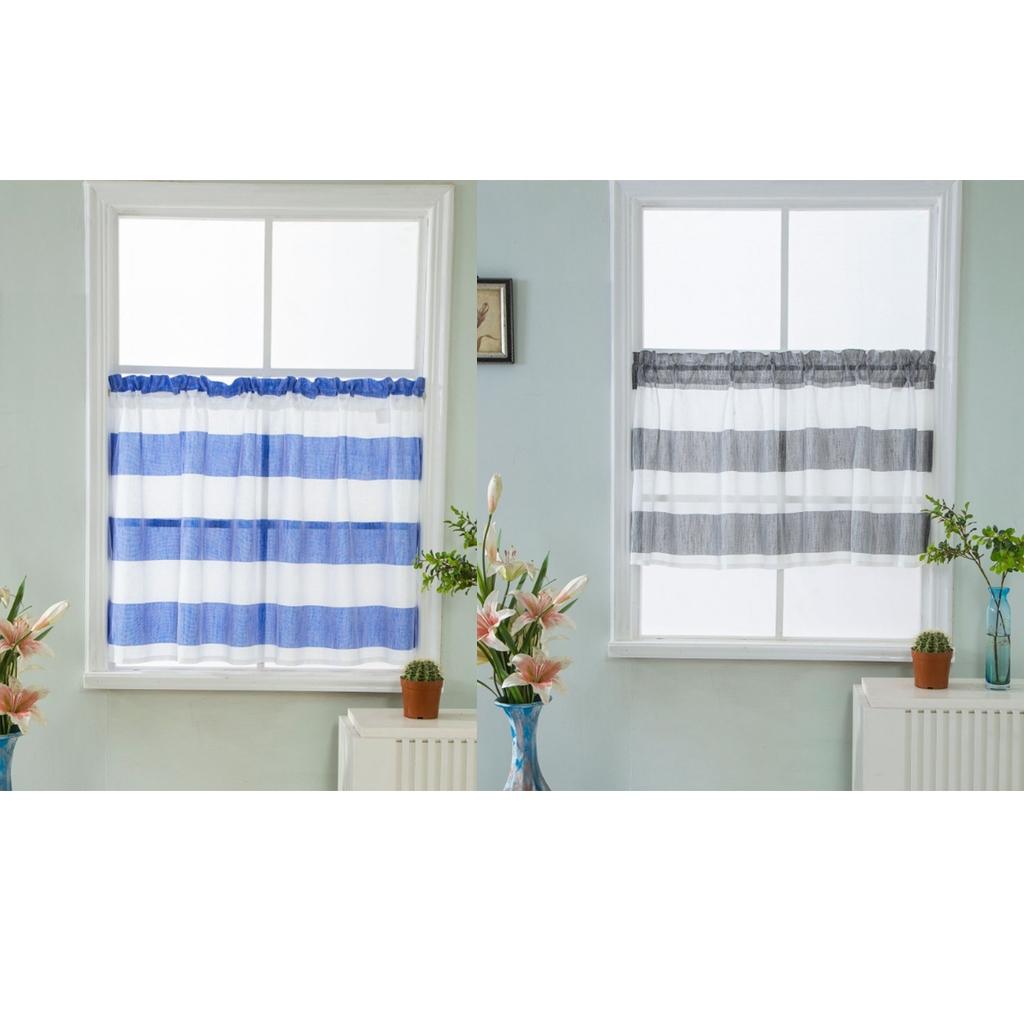 Max Window Striped Short Valance Rod Pocket Curtains Kitchen Grey_ 137x76cm