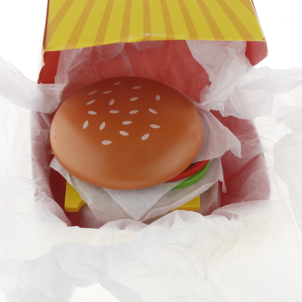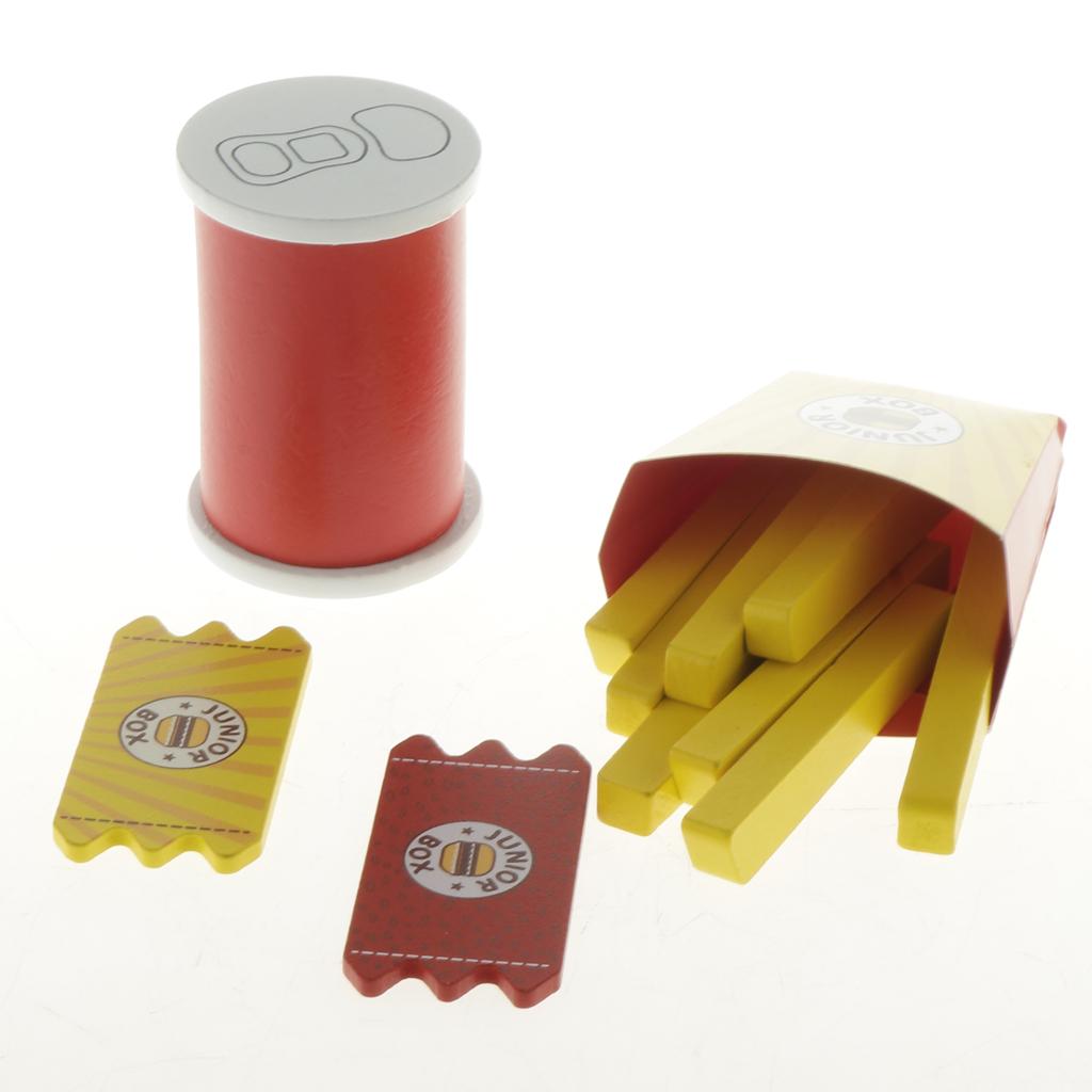 Maxbell Wooden Burger Fries Deluxe Dinner Set Kitchen Pretend Food Toy for Toddlers