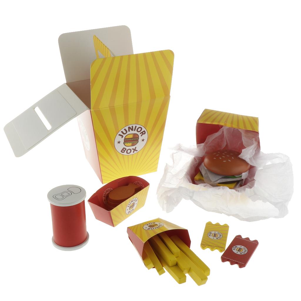 Fast Food Deluxe Dinner - Includes burger ingredients, fries, fish nuggets, cola, and a big tray to carry it allHigh-quality burger ingredients - Creating and stacking your favorite burger combinations