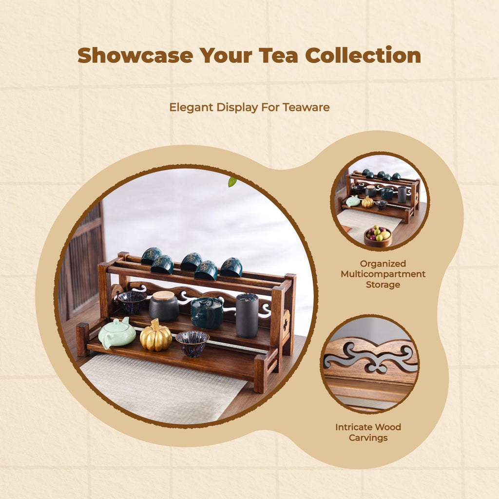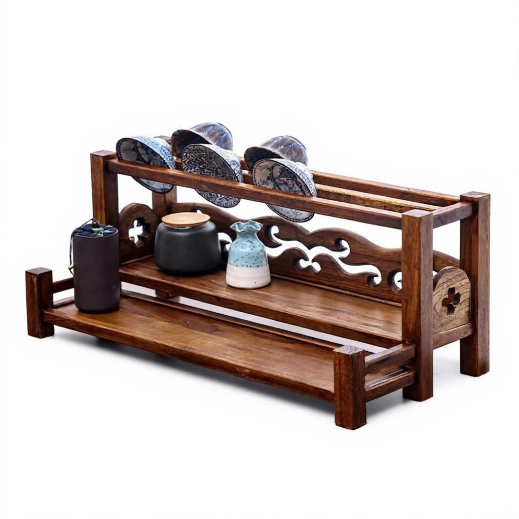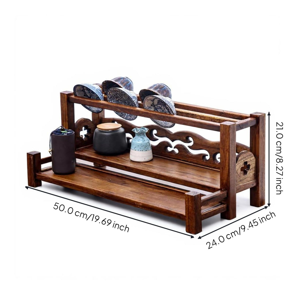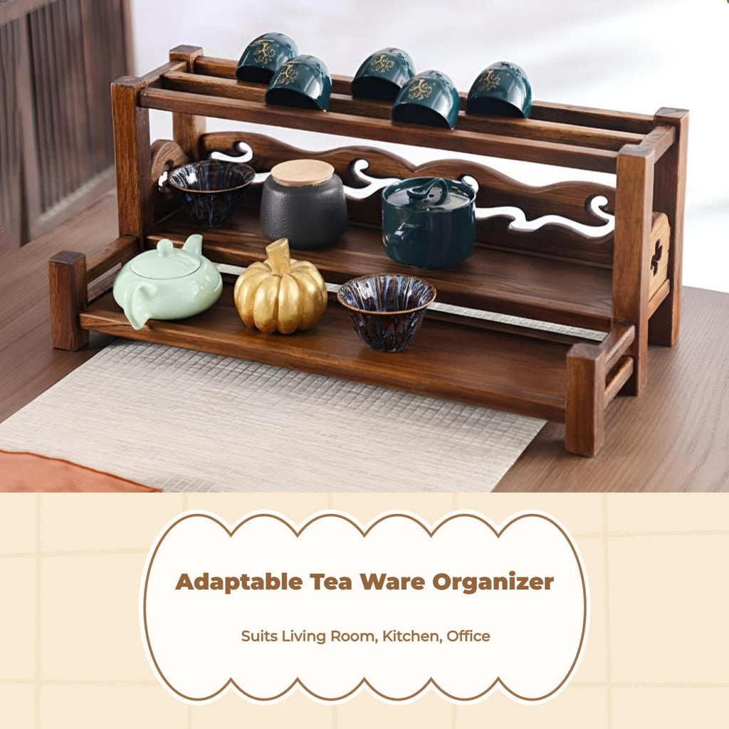 【Adaptable Wooden Tea Mug Holder】This sturdy wooden tea mug holder serves as a practical organizer and display rack for tea sets, mugs, and teapots, making it perfect for use in the kitchen, office, or tea room.【High-Quality Sturdy Wood Construction】Crafted from high-quality, robust wood, this tea rack delivers dependable support with a rustic appeal, blending effortlessly into various décor styles.【Strong Practicality and Space-Saving】Designed for efficient storage and organization, this tea mug shelf maximizes countertop or surface space, keeping your tea accessories neatly arranged.【Multi-Scene Application】perfect for use on tea tables, kitchen counters, living rooms, or offices, this display stand is perfect for showcasing teaware, mugs, or collectibles.【Easy to Maintain and Assemble】With a polished surface and sturdy framework, this holder ensures easy cleaning and simple assembly, offering a convenient solution for commonplace storage.Specification: