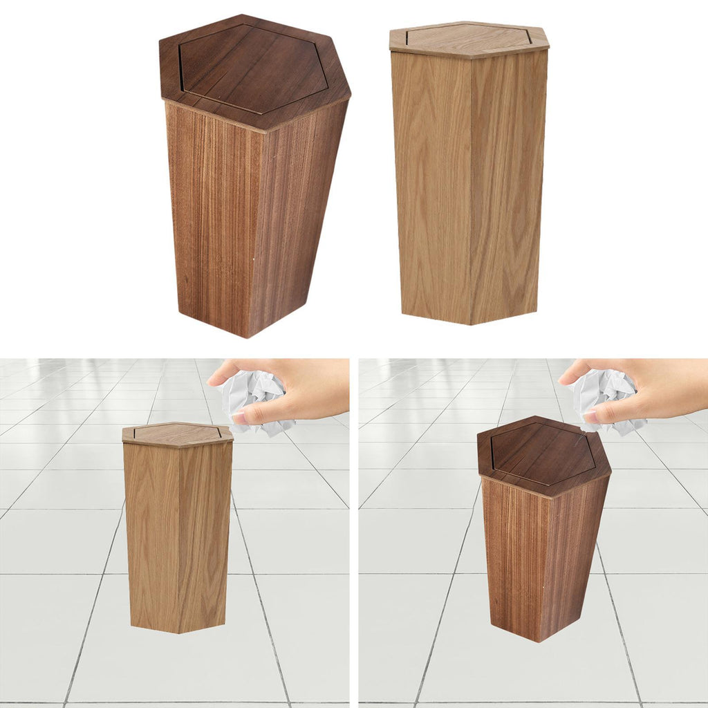 Maxbell Wooden Trash Can Compact Decorative Waste Basket for Office Bathroom Kitchen Walnut