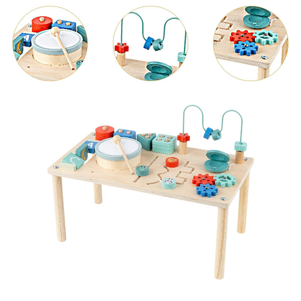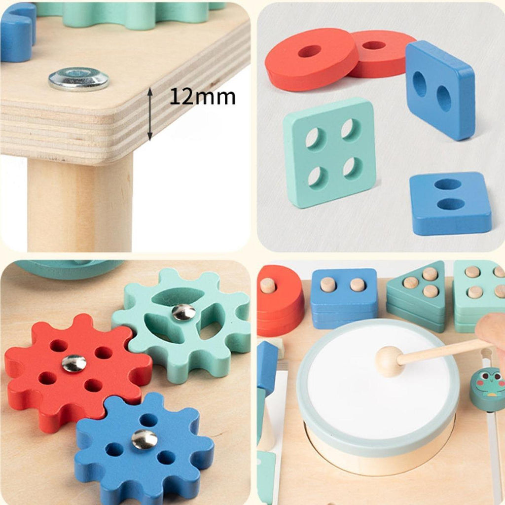 Maxbell Wooden Activity Table Kids Early Learning Toys for 1 2 3 4 Year Old Children