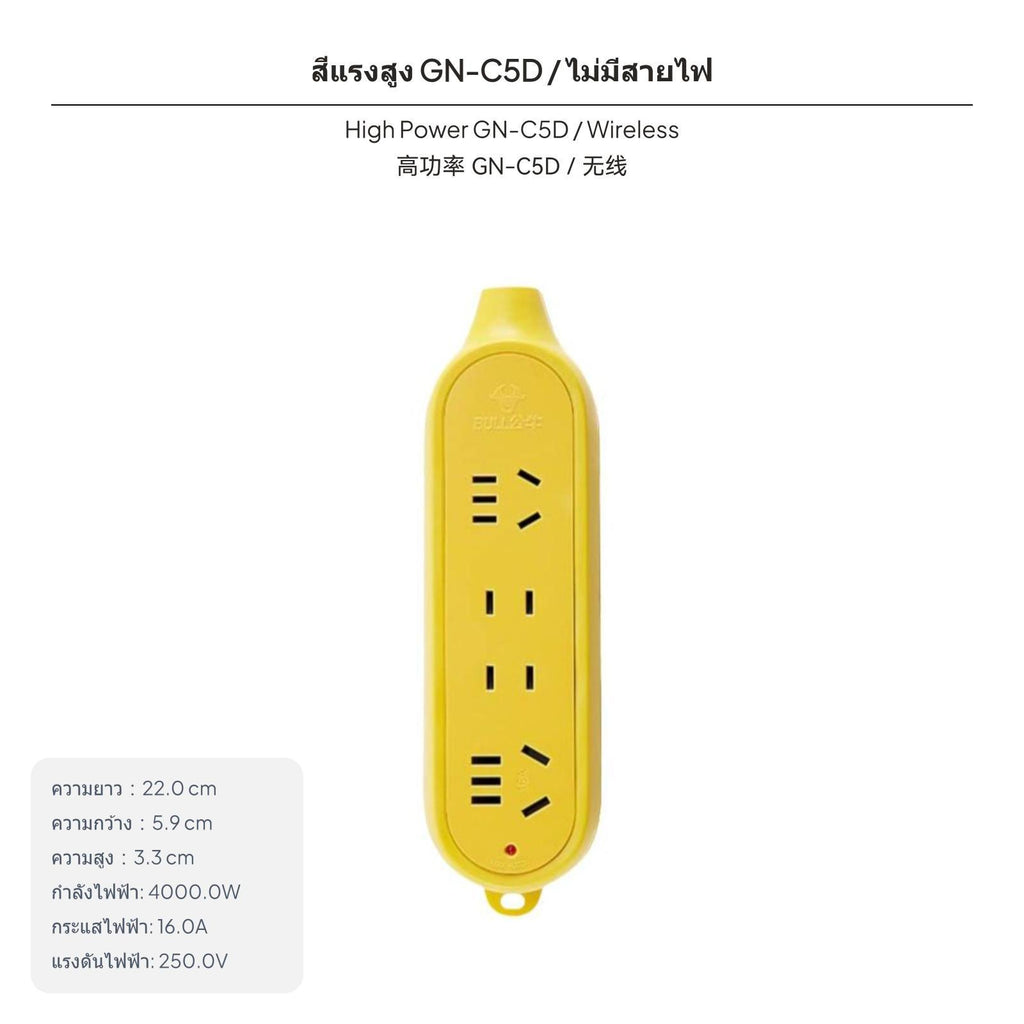 ปลั๊กไฟสามตา, ช่องUSB, รางปลั๊กไฟ, ป้องกันไฟฟ้าช็อต, ทนทาน, สำหรับบ้านและงานก่อสร้าง GN-C5D High Power No Cable