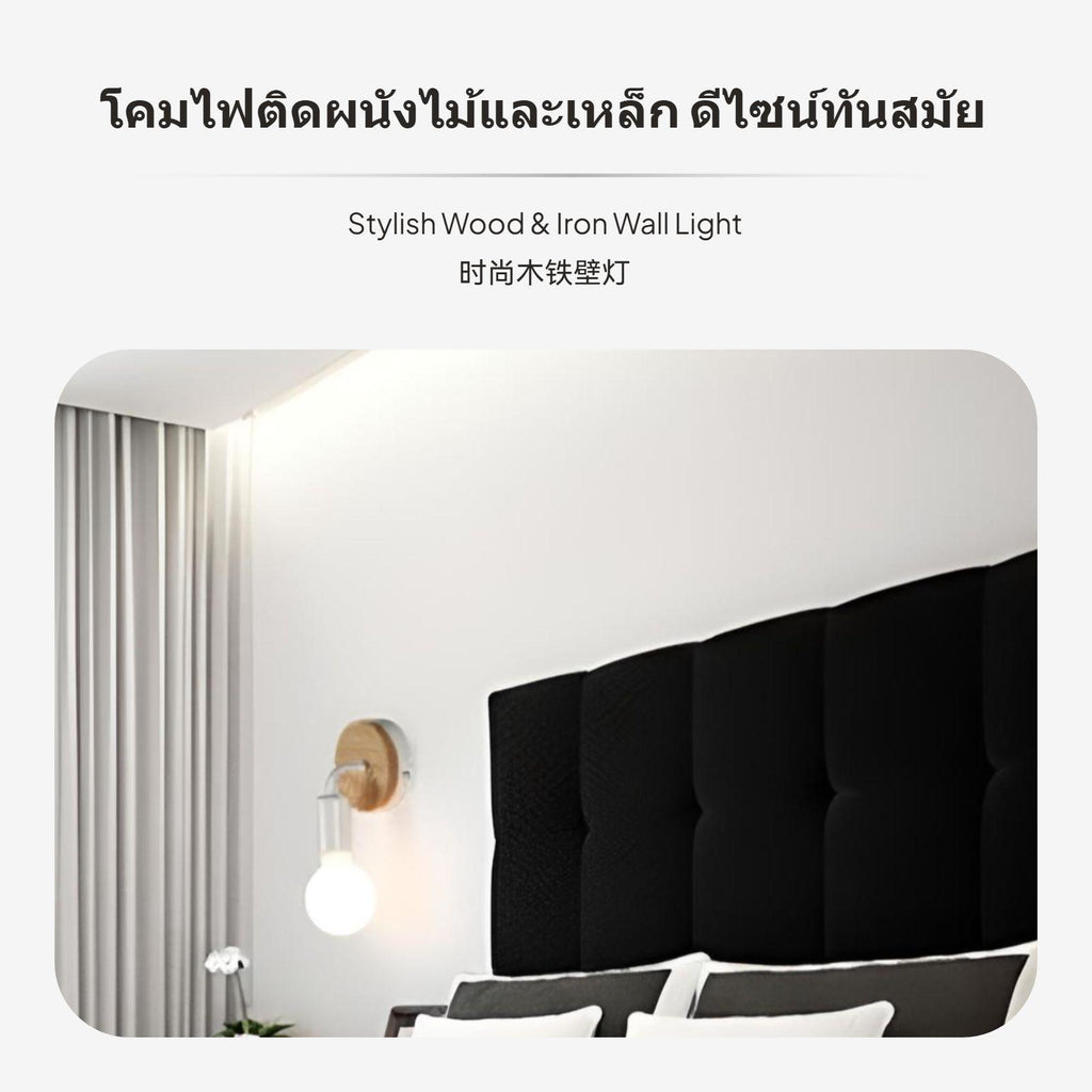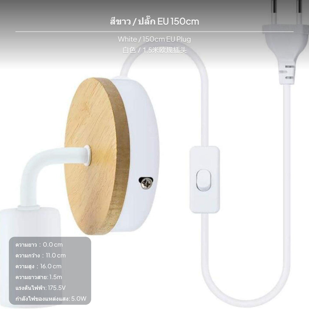 โคมไฟติดผนังสไตล์นอร์ดิก, เหล็ก+ไม้, โคมไฟข้างเตียง, โคมไฟ light-emitting diode, ติดตั้งง่าย, สำหรับห้องนอน/ห้องน้ำ/ทางเดิน White 150cm EU Plug