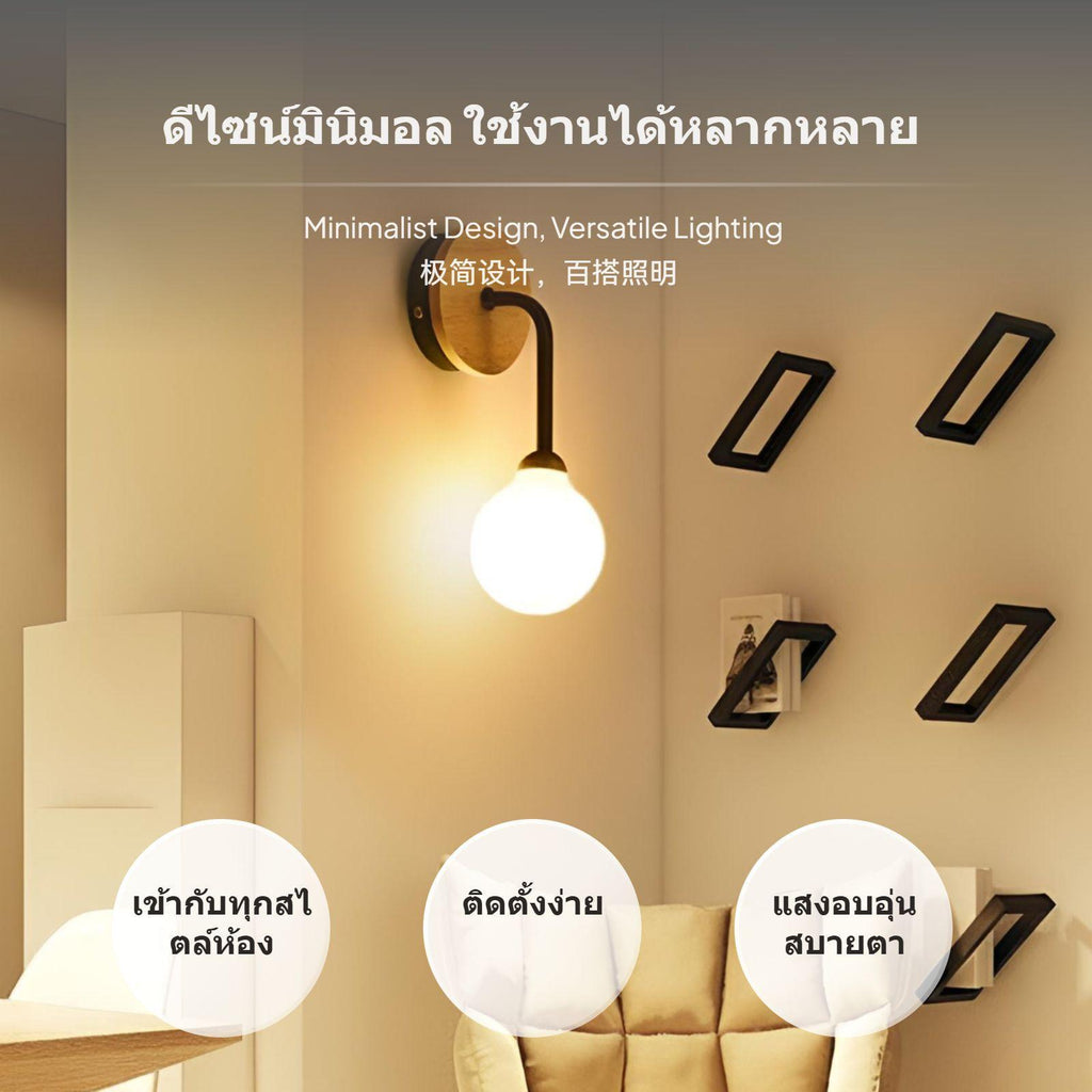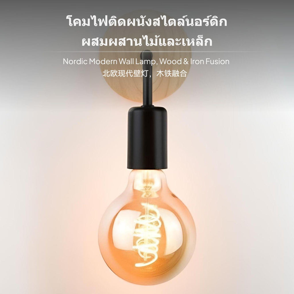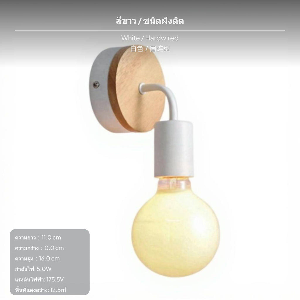 โคมไฟติดผนังสไตล์นอร์ดิก, เหล็ก+ไม้, โคมไฟข้างเตียง, โคมไฟ light-emitting diode, ติดตั้งง่าย, สำหรับห้องนอน/ห้องน้ำ/ทางเดิน White Hardwired