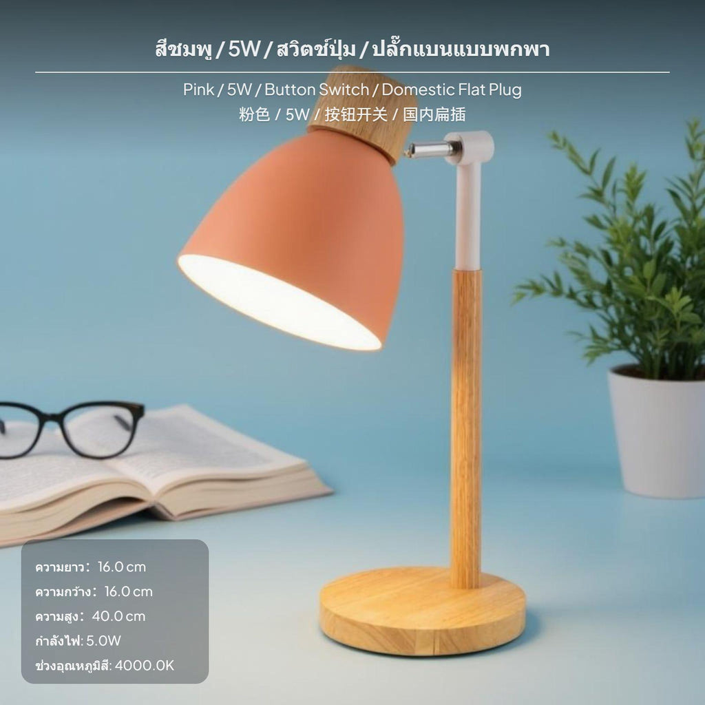 โคมไฟอ่านหนังสือถนอมสายตา light-emitting diode ปรับแสง 3 ระดับ สไตล์นอร์ดิก สำหรับโต๊ะข้างเตียง ห้องนอน ห้องอ่านหนังสือ Pink 5W