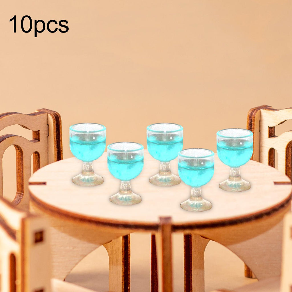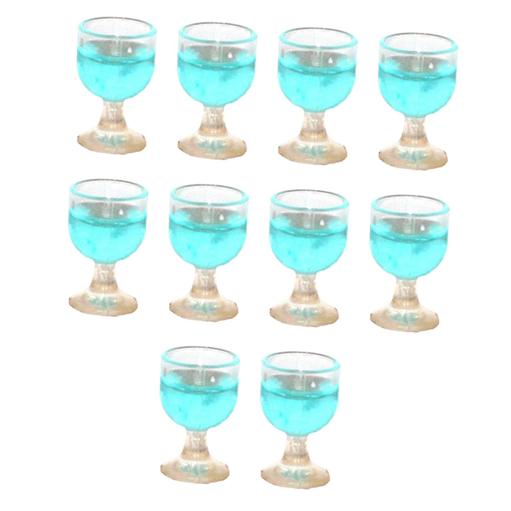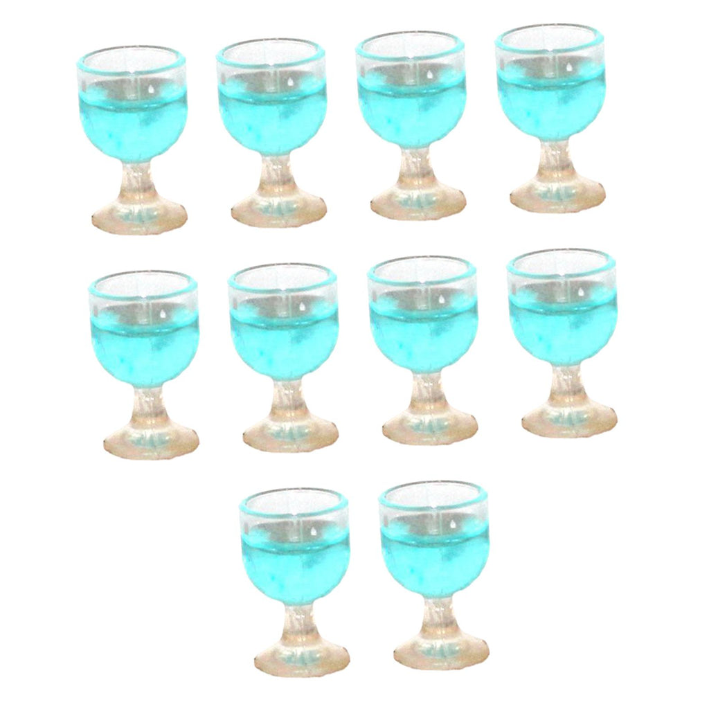 Maxbell 10x Dollhouse Drinking Water Cups Model Life Scene 1:12 Miniature Wine Glass Light Blue