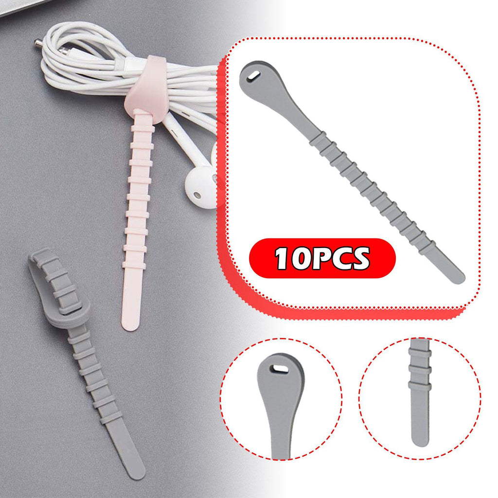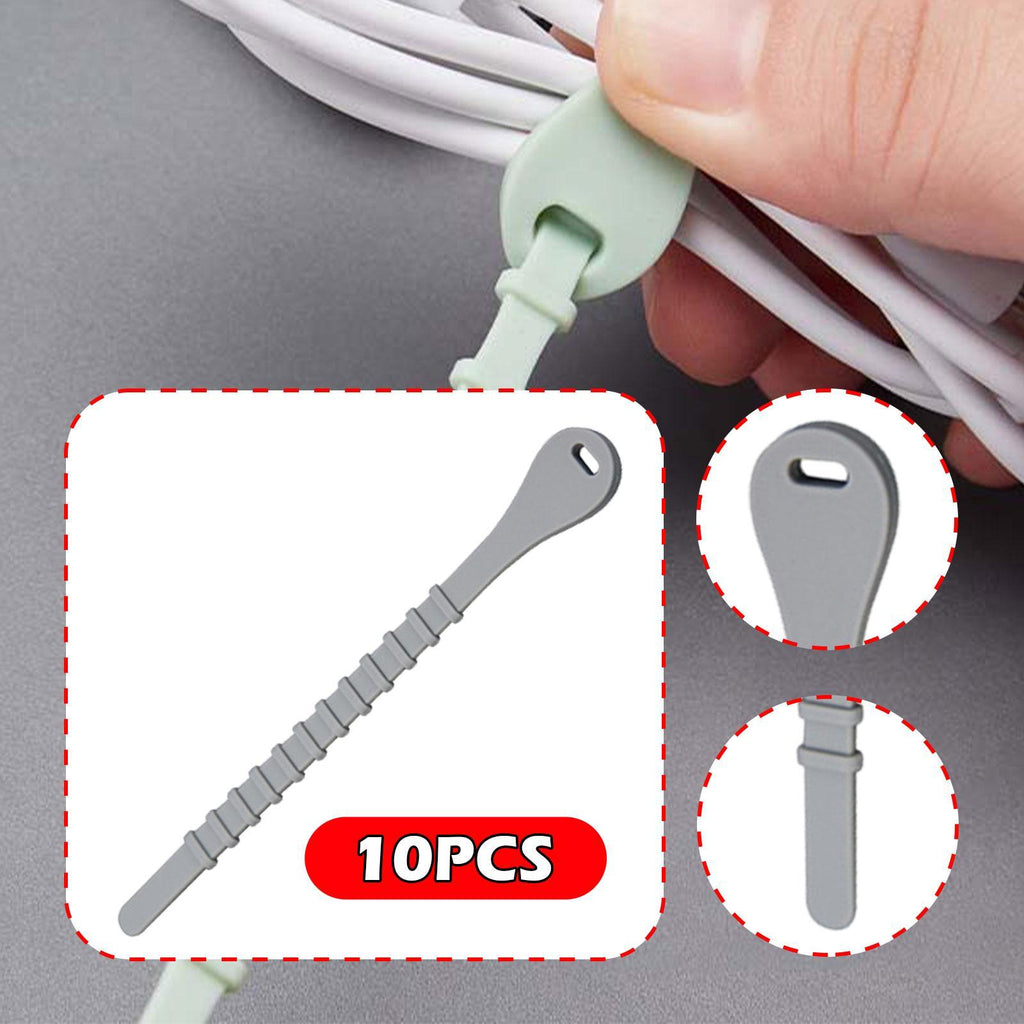 Maxbell 10x Silicone Cable Ties Desk Electrical Cords Home Adjustable Wire Organizer 13cmx1.5cm