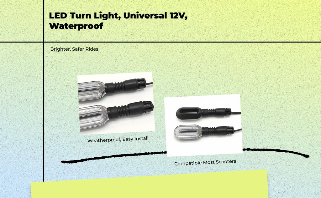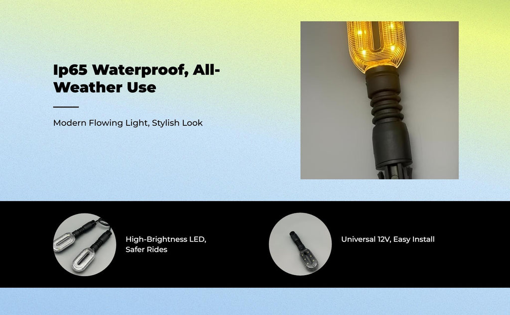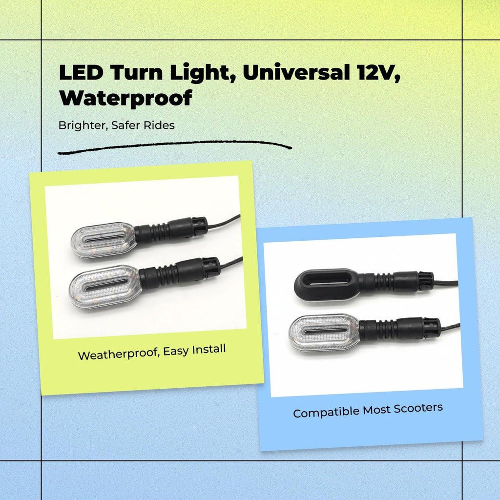 [High-Visibility light-emitting diode Turn marker] This 12V light-emitting diode turn marker light delivers bright lighting and clear markering for enhanced during rides, suitable for scooters and motorcycles. [sturdy Waterproof Construction] Made from robust materials, the IP65 waterproof design ensures dependable performance in various weather conditions, protecting the marker from rain and debris. [Universal Fit and Easy Installation] Compatible with most two-wheelight-emitting diode light-emitting diode vehicles, this turn marker light is easy to install, making it a practical enhancement for scooters and motorcycles. [Flowing Water light-emitting diode Effect] Features a dynamic flowing water light-emitting diode effect, providing a modern and stylish look to your vehicle while improving visibility on the street. [Cost-Effective and Practical] Combining affordability with strong functionality, this turn marker light offers value and long performance for everyday commuting or recreational riding.Specification: