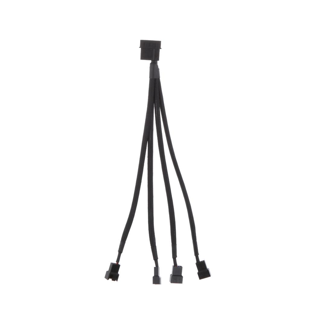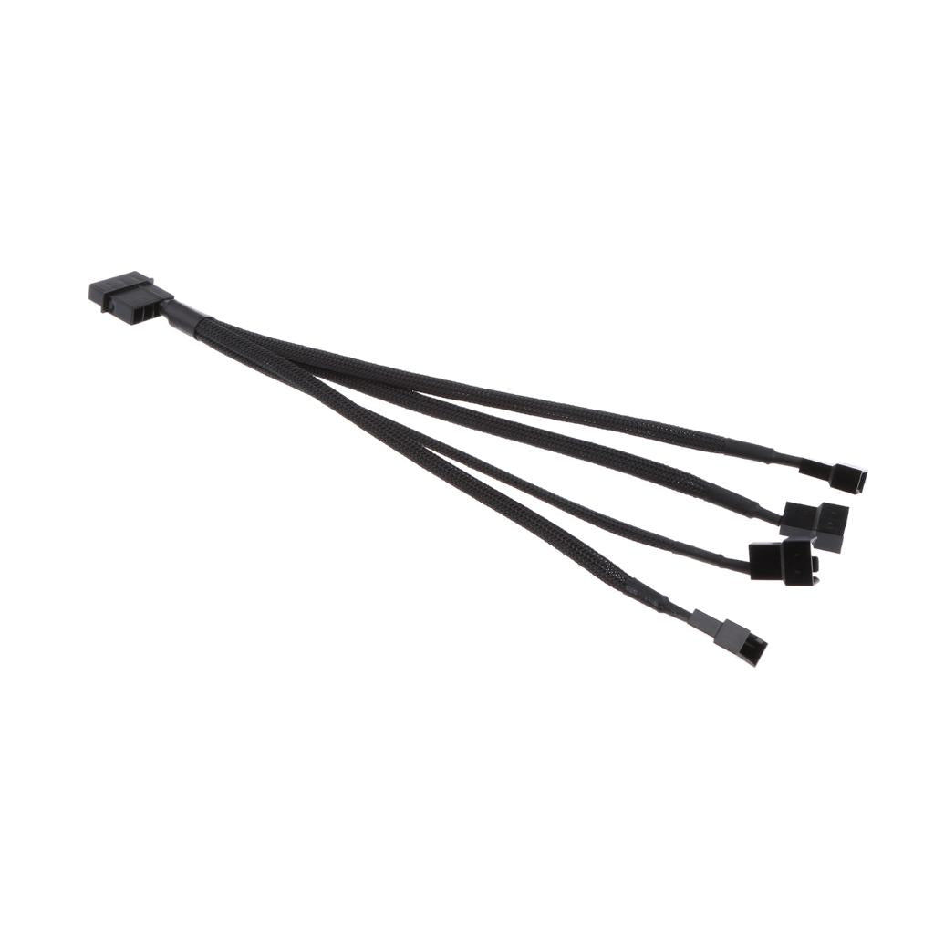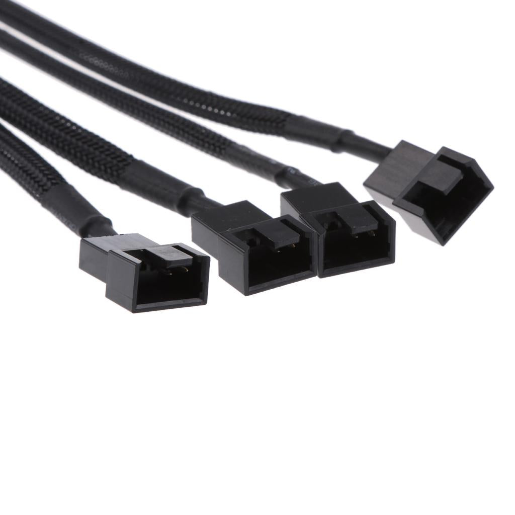 Maxbell 1PCS 3/4 pin Fan Splitter Y Extension Power Cable Sleeved 1 to 4Ports