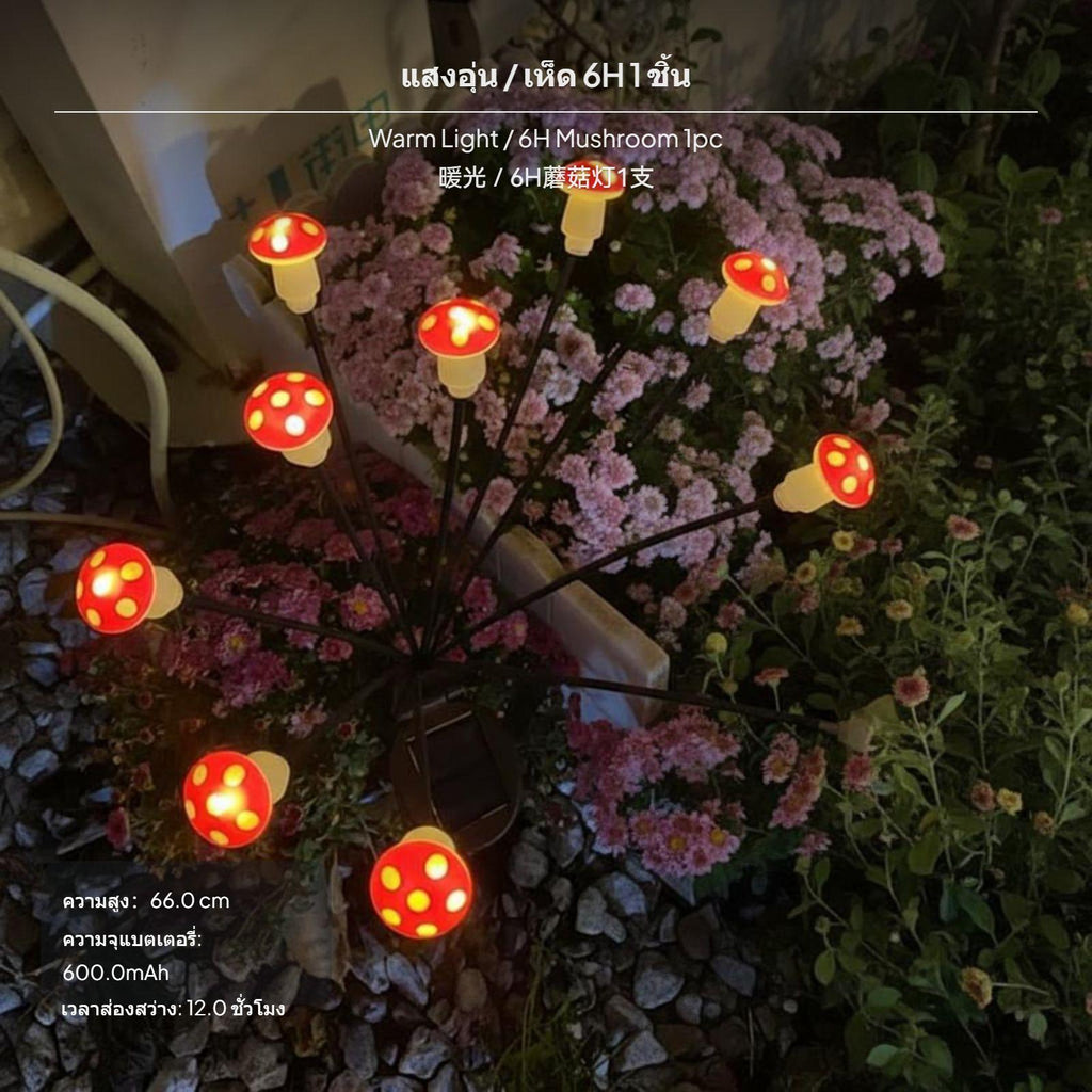 【โคมไฟแสงอาทิตย์กลางแจ้งสำหรับตกแต่งสวน】โคมไฟเห็ดและโคมไฟแมงกะพรุนนี้เหมาะสำหรับตกแต่งสวน, สนามหญ้า, ระเบียง และภูมิทัศน์กลางแจ้ง ด้วยดีไซน์ทันสมัยและแสงสีสันสดใส สร้างบรรยากาศอบอุ่นและโรแมนติกในทุกพื้นที่.【พลังงานแสงอาทิตย์และประหยัดพลังงาน】ใช้แผงเซลล์แสงอาทิตย์ประสิทธิภาพสูง ชาร์จอัตโนมัติในเวลากลางวันและเปิดไฟอัตโนมัติในเวลากลางคืน ให้แสงสว่างต่อเนื่อง 12-15 ชั่วโมงโดยไม่ต้องเสียค่าไฟ.【กันน้ำระดับ IP65 ใช้งานได้ทุกสภาพอากาศ】โคมไฟนี้ผลิตจากวัสดุคุณภาพสูง ABS และสแตนเลส พร้อมฝาครอบซิลิโคน ทนทานต่อฝนและความชื้น เหมาะสำหรับใช้งานกลางแจ้งตลอดปี.【ติดตั้งง่าย ไม่ต้องเดินสายไฟ】ดีไซน์แบบเสียบลงดิน เพียงประกอบและเสียบลงในดินก็พร้อมใช้งาน เหมาะสำหรับตกแต่งสวน สนามหญ้า หรือระเบียงได้อย่างสะดวก.【ดีไซน์หลากหลายและแสงสีสันสดใส】มีให้เลือกทั้งแบบเห็ดและแมงกะพรุน พร้อมแสงสี RGB และแสงอบอุ่น สร้างบรรยากาศพิเศษสำหรับงานปาร์ตี้หรือการตกแต่งบ้าน.Specification:
