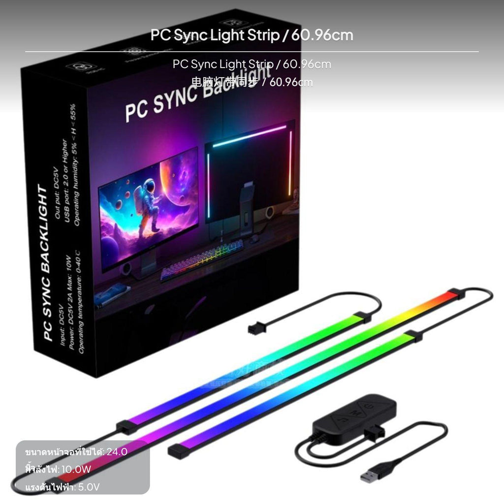 2 เมตร RGB light strip แถบไฟ, port บลูทูธ, ตกแต่งคอมพิวเตอร์, ห้องนอน, เปลี่ยนสี PC Sync 60.96cm