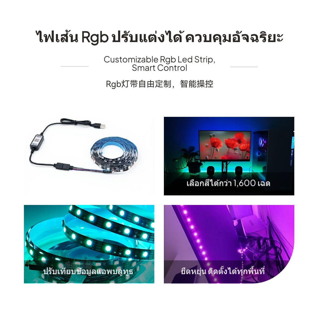 2 เมตร RGB light strip แถบไฟ, port บลูทูธ, ตกแต่งคอมพิวเตอร์, ห้องนอน, เปลี่ยนสี USB BT APP RGB 100cm