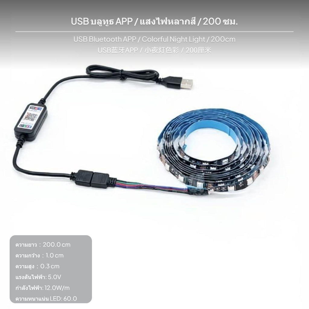 2 เมตร RGB light strip แถบไฟ, port บลูทูธ, ตกแต่งคอมพิวเตอร์, ห้องนอน, เปลี่ยนสี USB BT APP RGB 200cm