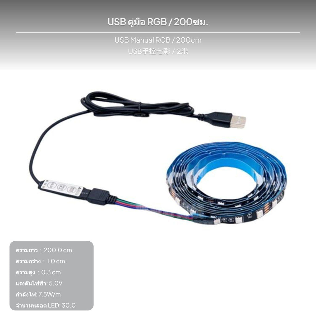 2 เมตร RGB light strip แถบไฟ, port บลูทูธ, ตกแต่งคอมพิวเตอร์, ห้องนอน, เปลี่ยนสี USB Manual RGB 200cm