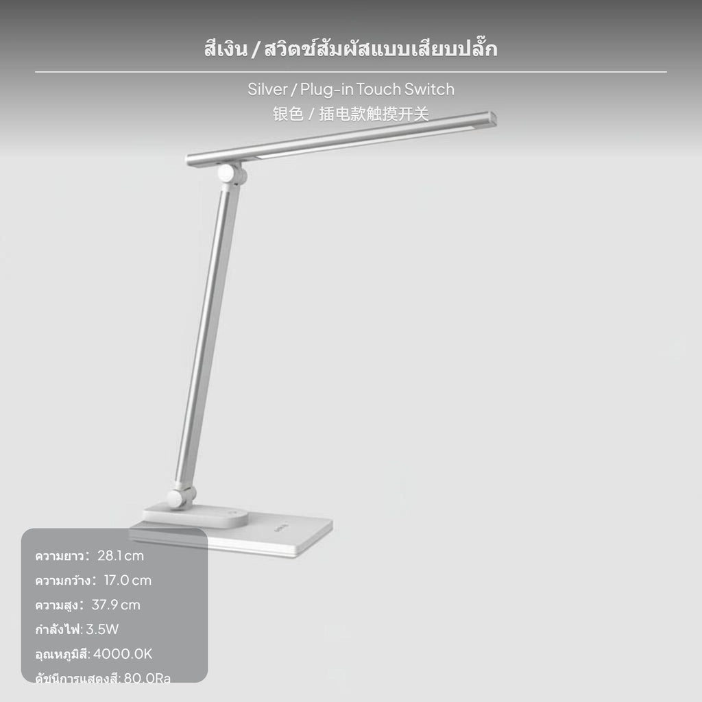 【โคมไฟตั้งโต๊ะ light-emitting diode ป้องกันสายตา】โคมไฟตั้งโต๊ะ light-emitting diode แบบ 2-in-1 เหมาะสำหรับนักเรียนและการใช้งานในหอพัก ให้แสงสว่างที่นุ่มนวลและปลอดภัยต่อสายตา เหมาะสำหรับอ่านหนังสือและเขียนงานในทุกสถานการณ์【ปรับระดับแสงและมุมได้หลายแบบ】สามารถปรับความสว่างและอุณหภูมิสีได้หลายระดับ พร้อมโครงสร้างหมุนได้อิสระ ช่วยให้ปรับทิศทางแสงได้ตามต้องการ【ใช้งานได้ทั้งแบบเสียบปลั๊กและชาร์จแบต】มาพร้อมแบตเตอรี่ความจุสูง รองรับการใช้งานต่อเนื่องยาวนาน เหมาะสำหรับการพกพาไปใช้นอกสถานที่หรือในห้องเรียน【วัสดุคุณภาพสูงและดีไซน์ทันสมัย】ผลิตจาก ABS และอลูมิเนียม แข็งแรง ทนทาน ระบายความร้อนได้ดี ดีไซน์เรียบง่ายเหมาะกับทุกสไตล์โต๊ะ【ควบคุมง่ายด้วยระบบสัมผัส】สวิตช์สัมผัสใช้งานสะดวก พร้อมฟังก์ชันเสริม เช่น โหมดไฟกลางคืนและปรับแสงอัตโนมัติในบางรุ่นSpecification: