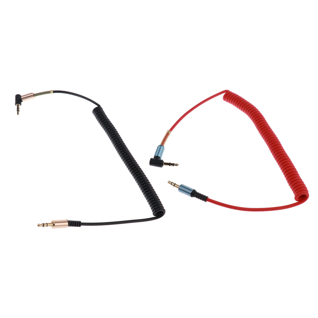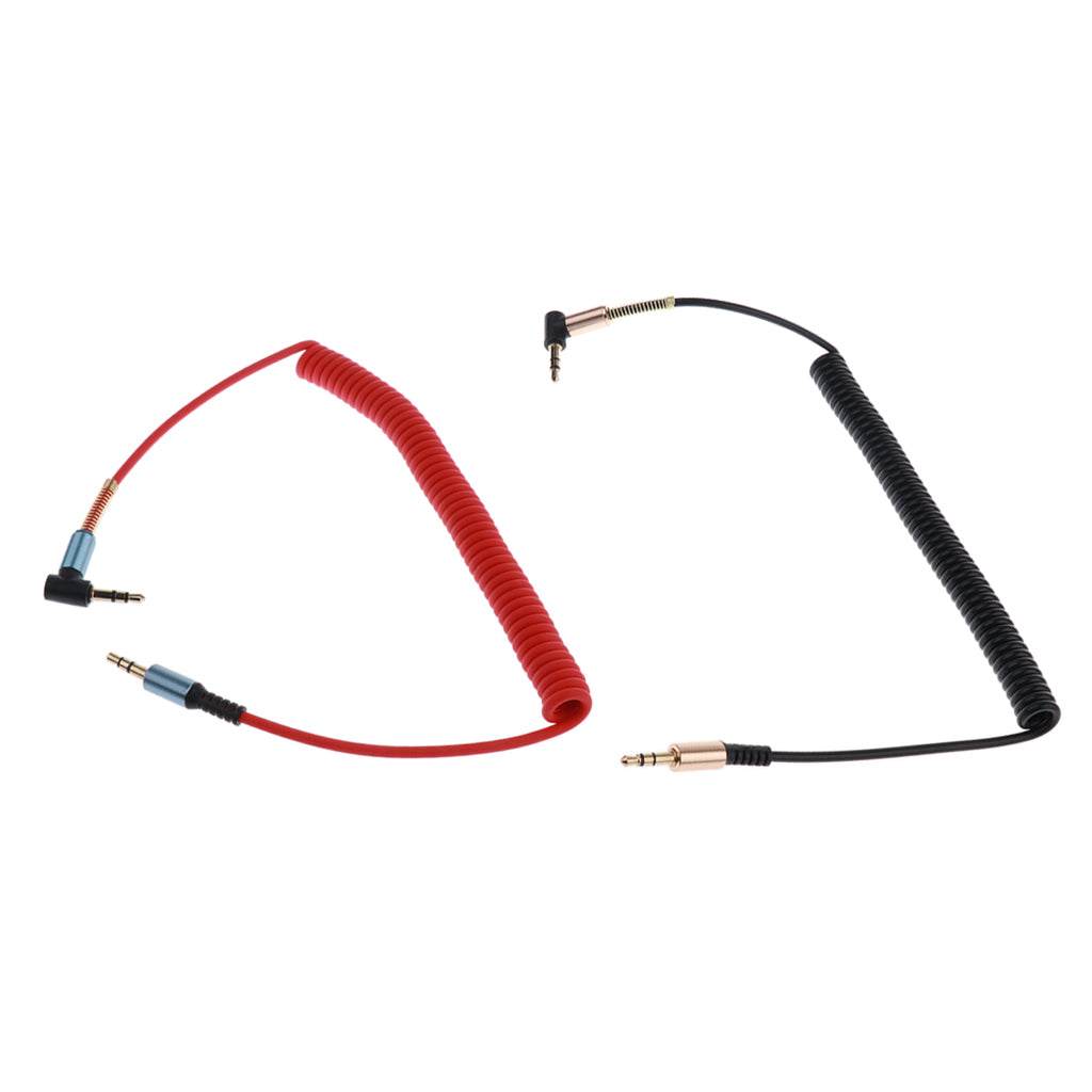 Maxbell 2 Pieces 3.5mm (1/8") M-M Coiled Audio Cable Wire Headphone Cable Black+Red