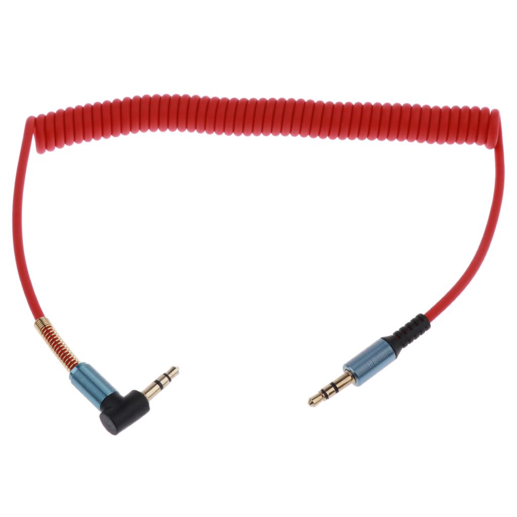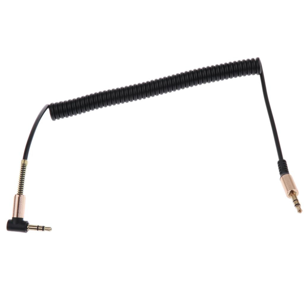 3.5mm L-Shaped Right Angle Stereo Audio Aux Headphone Coiled Cable Extension Cord