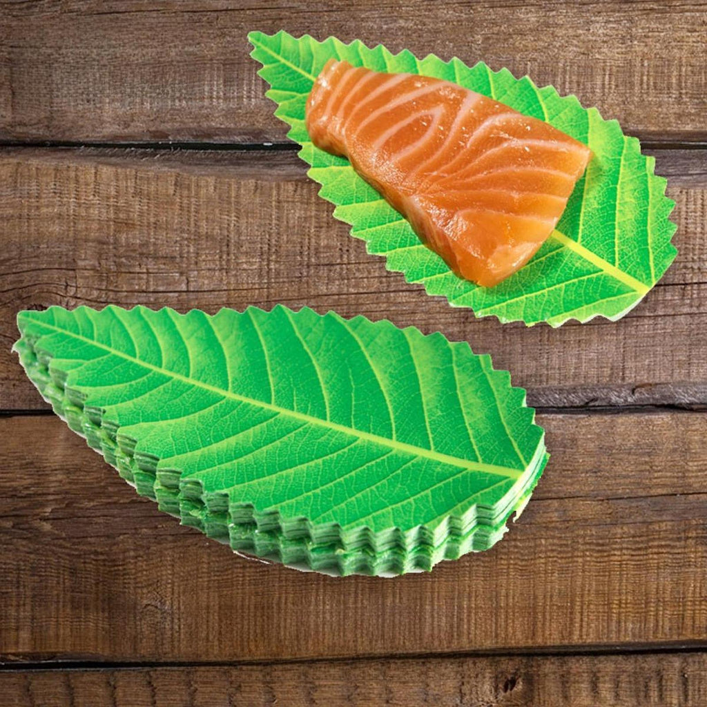 【Package】:   Including 200 pieces green leaves sashimi serving tray decors