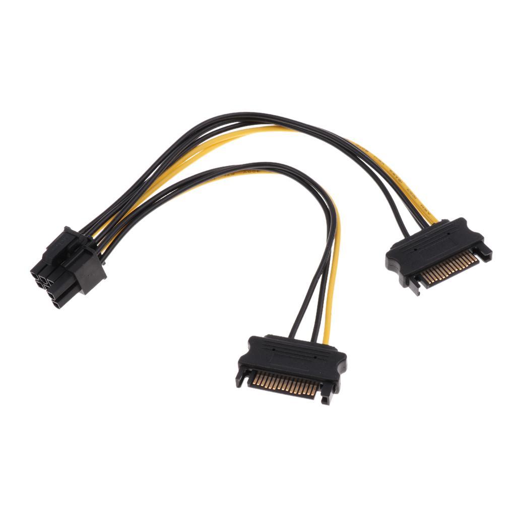 Maxbell 20cm PCI-E Dual SATA 15PIN to 8P Power Cables for Graphics Video Card of Computer