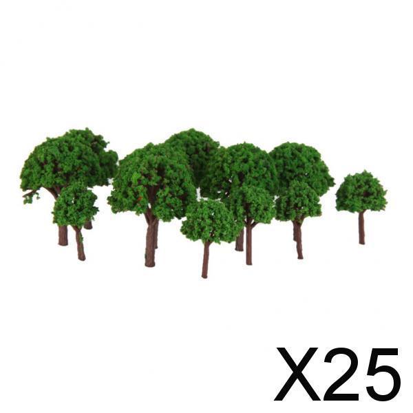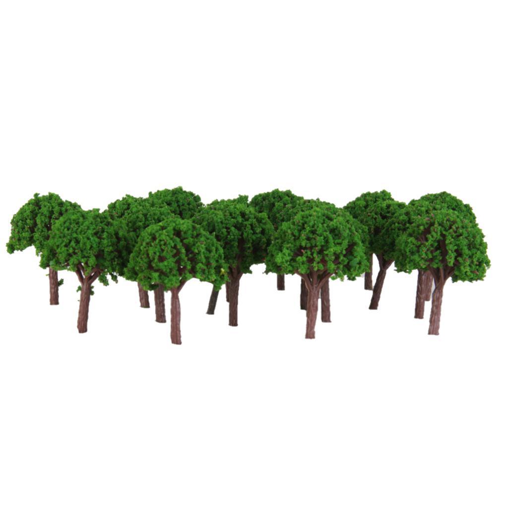Maxbell 25x50pcs 3cm Scenery Landscape Train Model Trees Light Green Scale 1/500