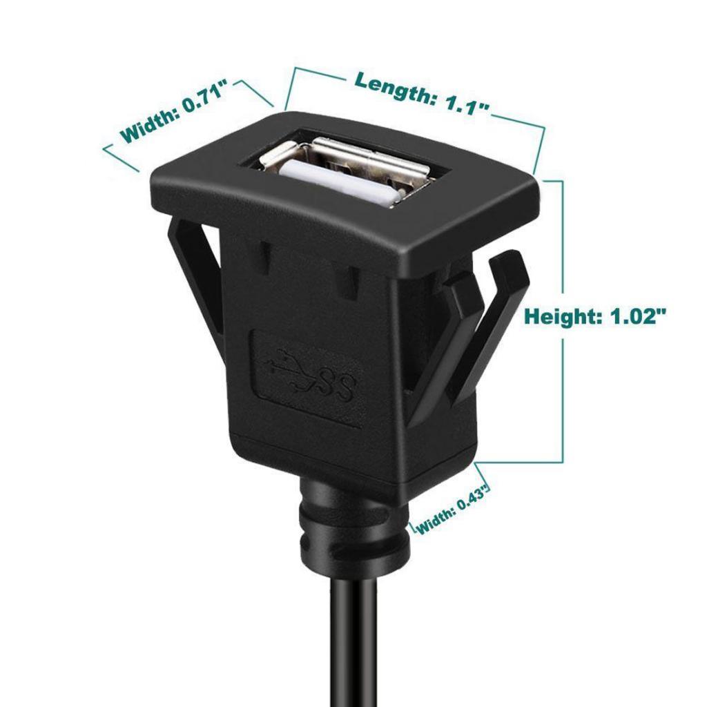 This handy mountable USB extension can be used to either provide a flush mounted USB input on your dash or other surface.
