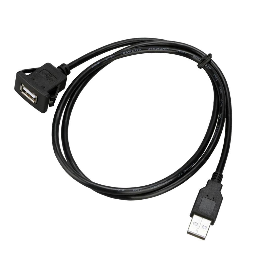 2m/6.7ft Single Port USB Panel Flush Mount Cable USB2.0 A Male to USB 2.0 A Female Car Mount Extension Cable.