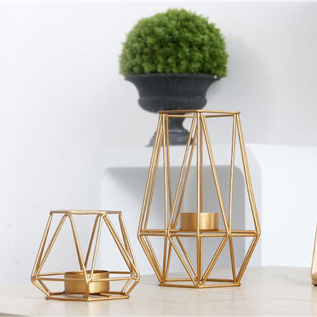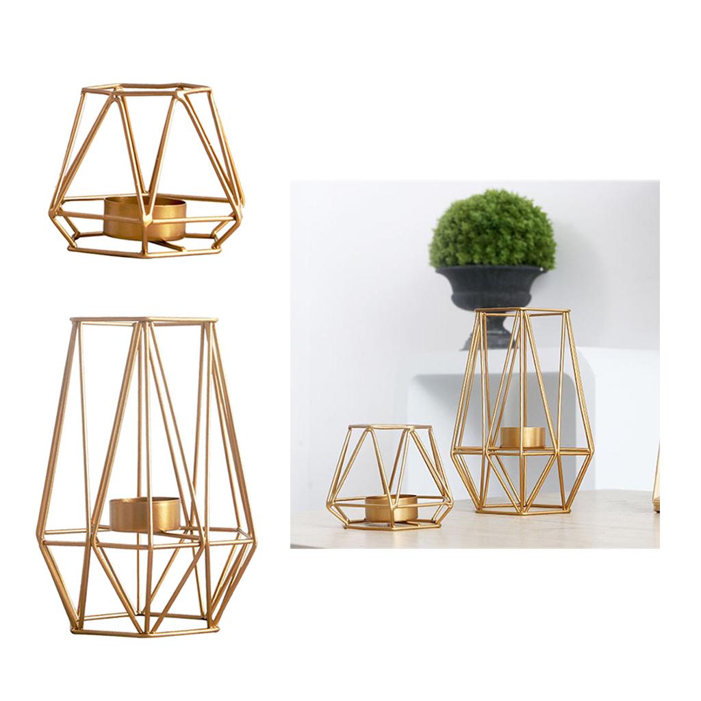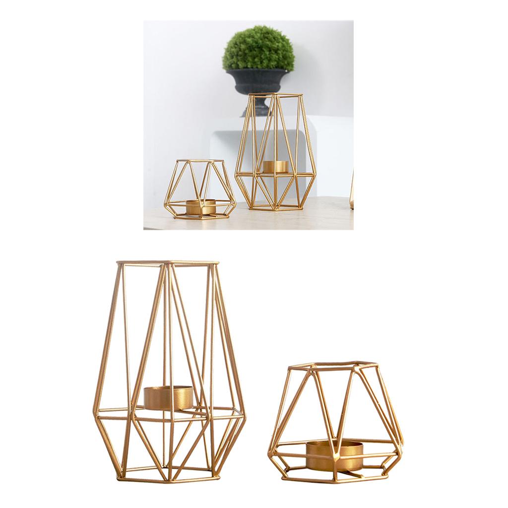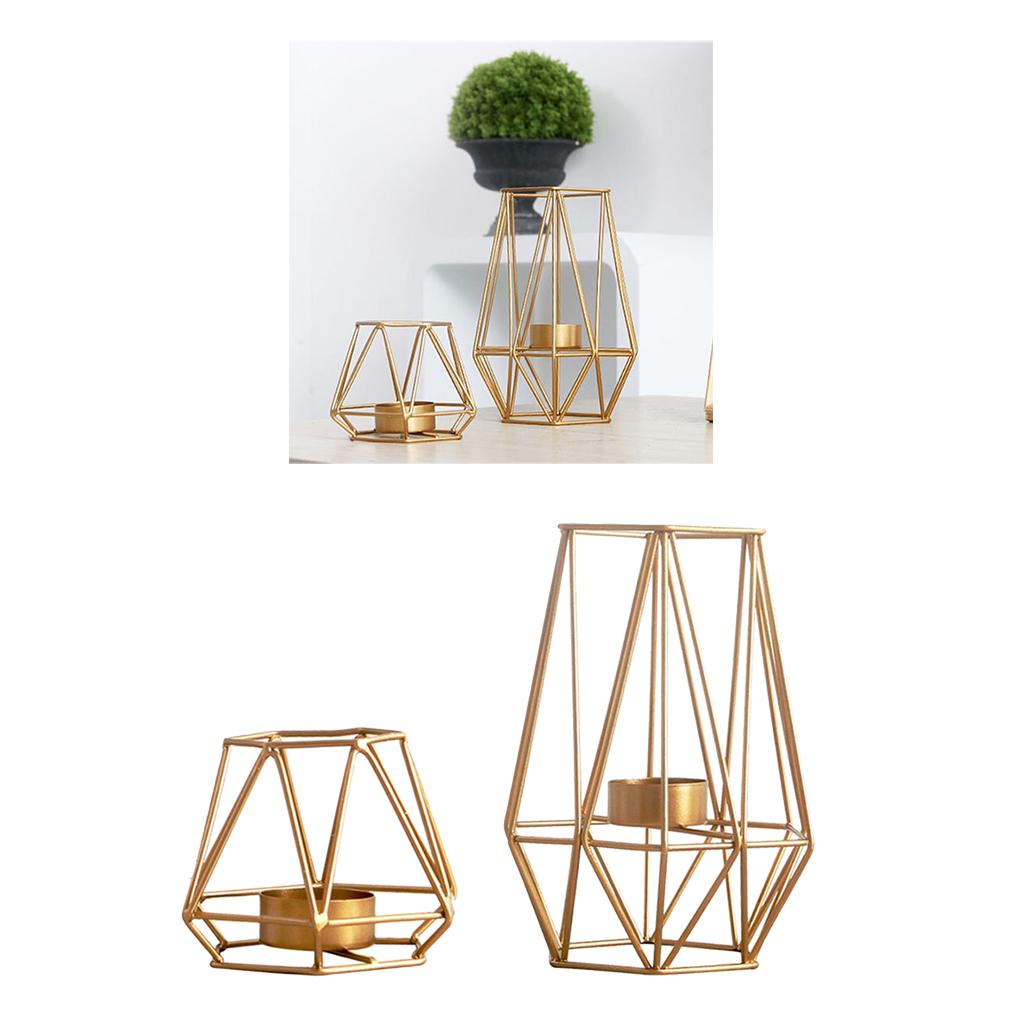 Maxbell 2pcs 3D Geometric Candle Holder Iron Frame Tealight Candle Candlestick Gold
