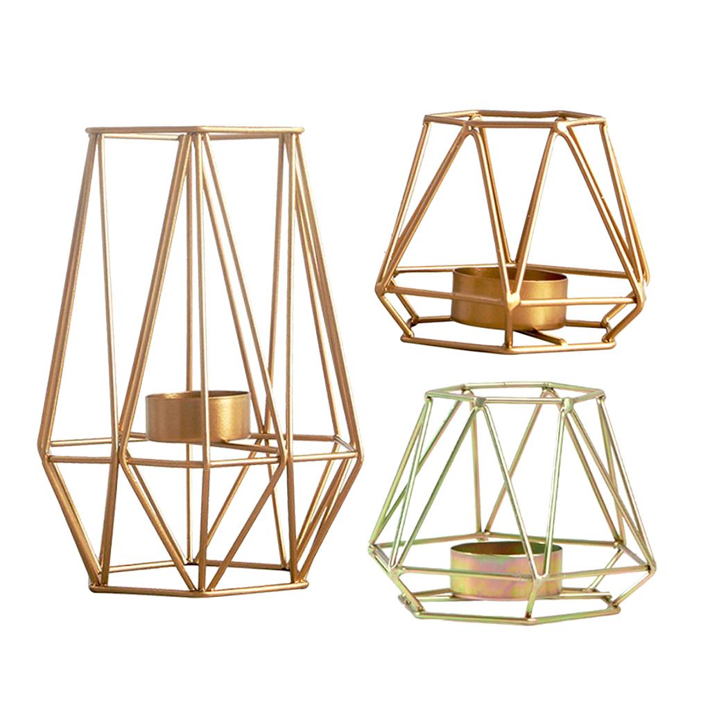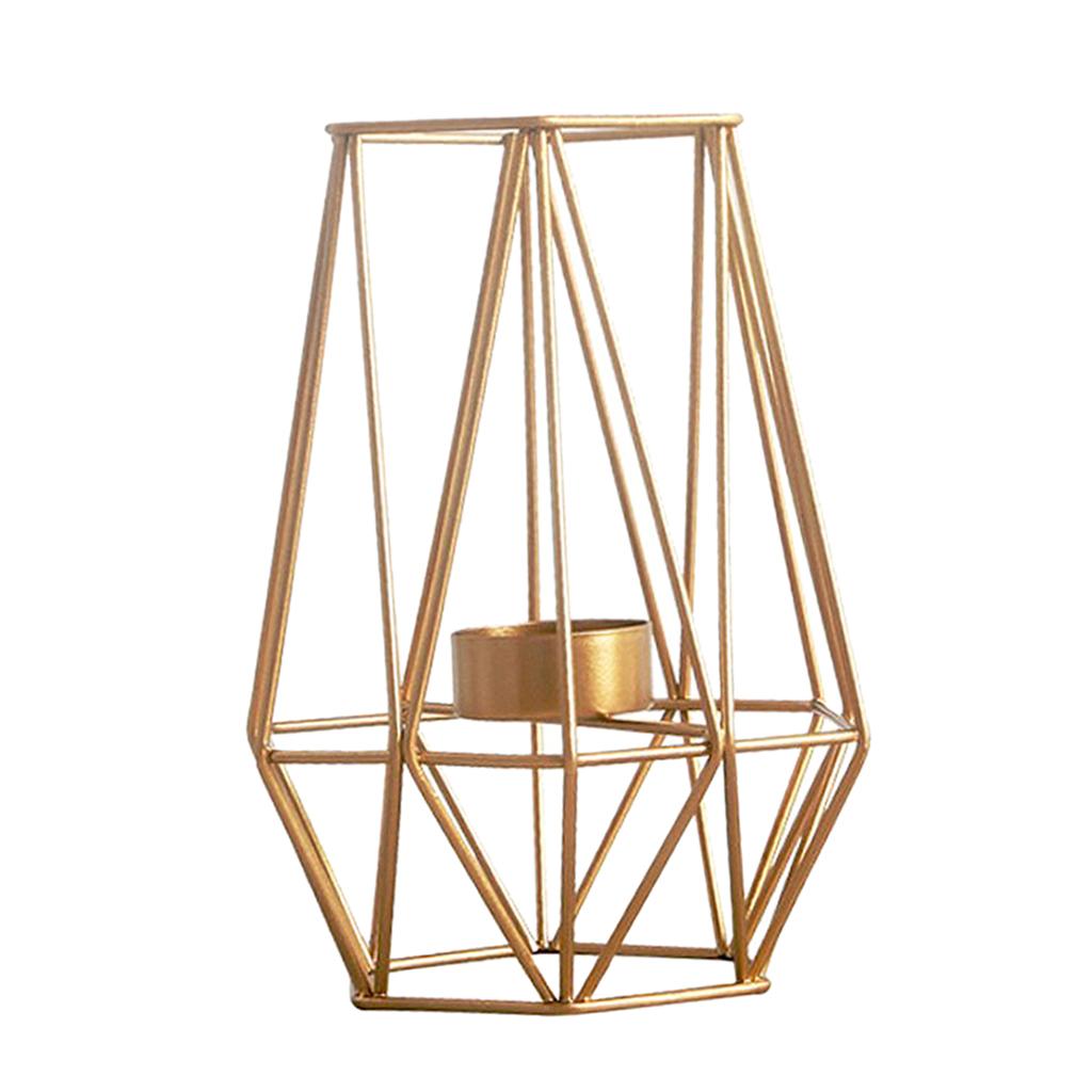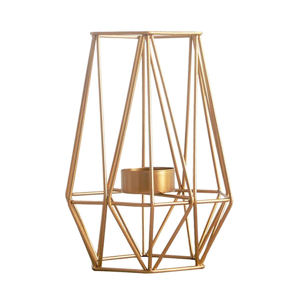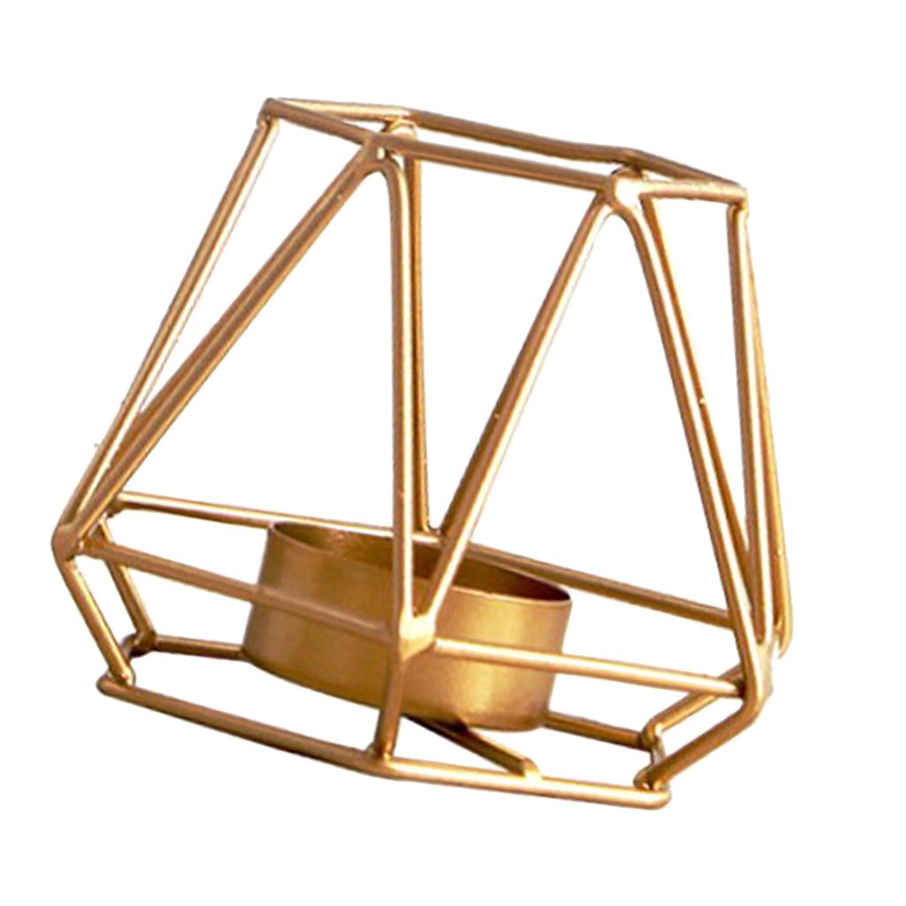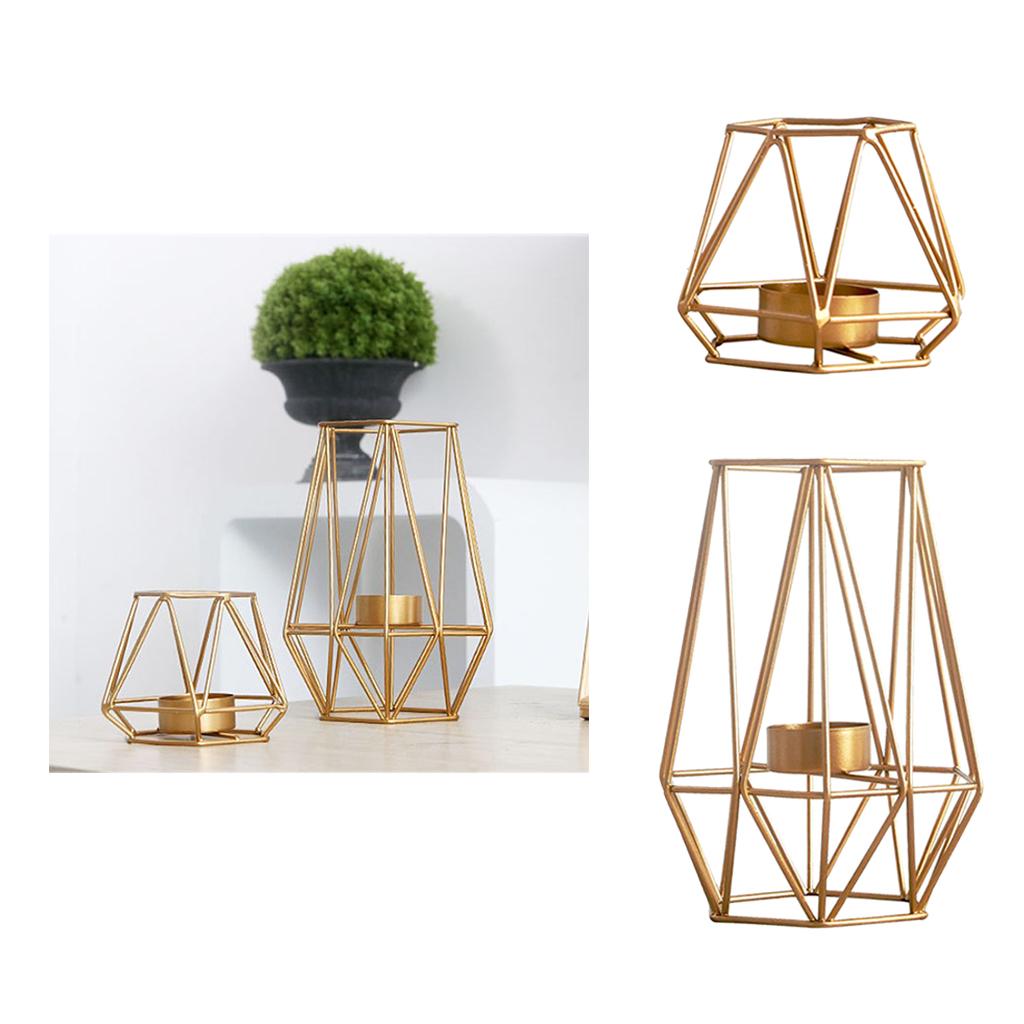Maxbell 2pcs 3D Geometric Candle Holder Iron Frame Tealight Candle Candlestick Gold